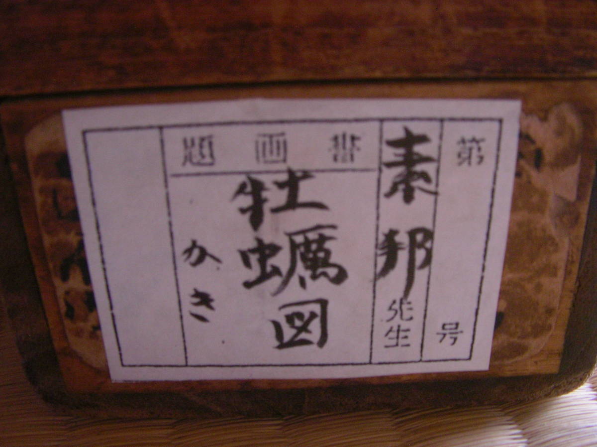 共箱には「牡蠣図 素邦」との題と、蓋裏には昭和に描いたとの自筆の書付と印があります。