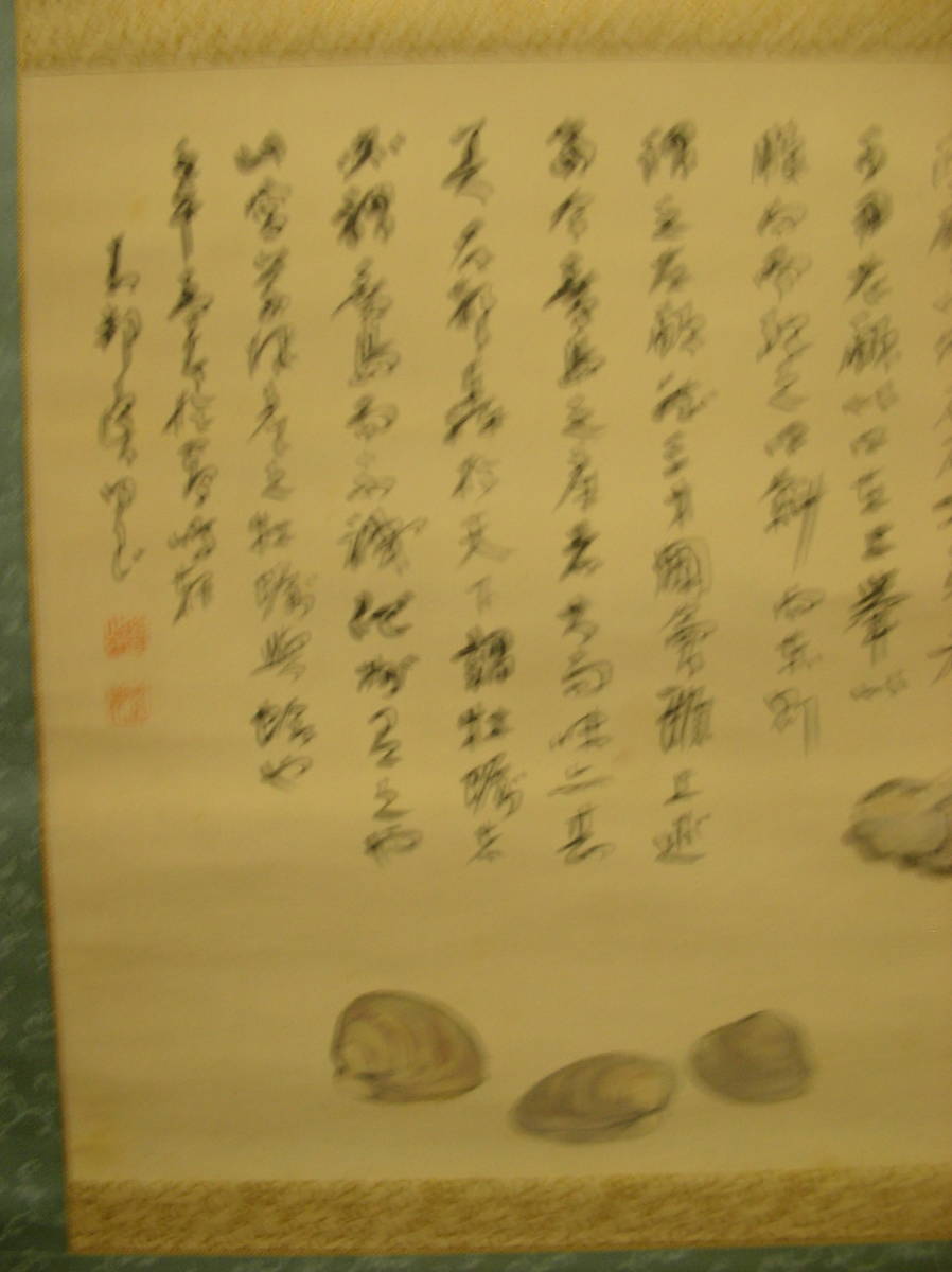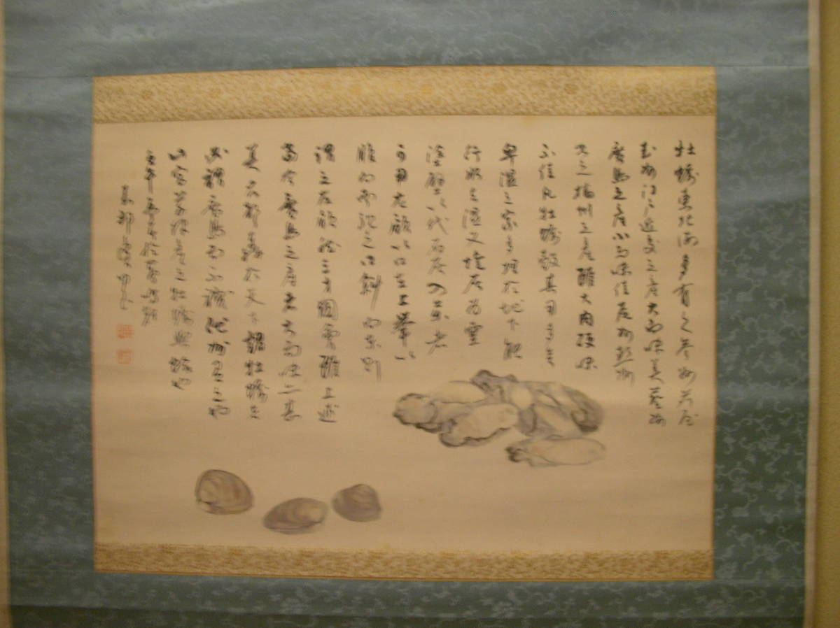 牡蠣と蛤の絵と讃を描いた掛軸です。