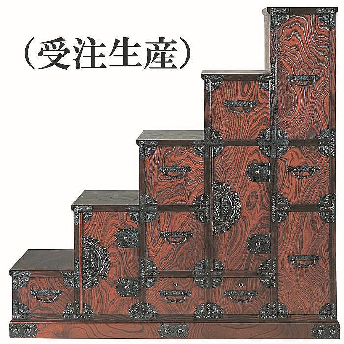 民芸箪笥 和たんす 和風 126cm 彩り階段チェスト 左下り 受注生産 筑後民芸 ●ブラウン系