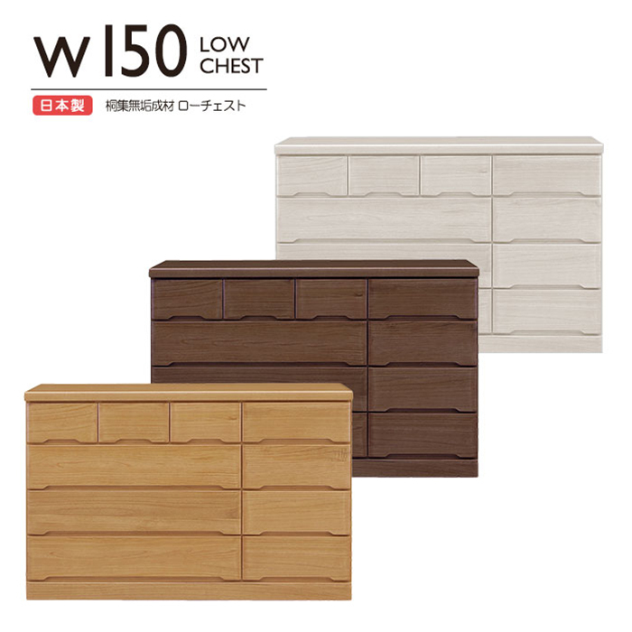 幅150cm ローチェスト 日本製 国産 4段 タンス 箪笥 整理タンス 箱組み 引き出し集成材 木製 家具 洋服タンス ブラウン