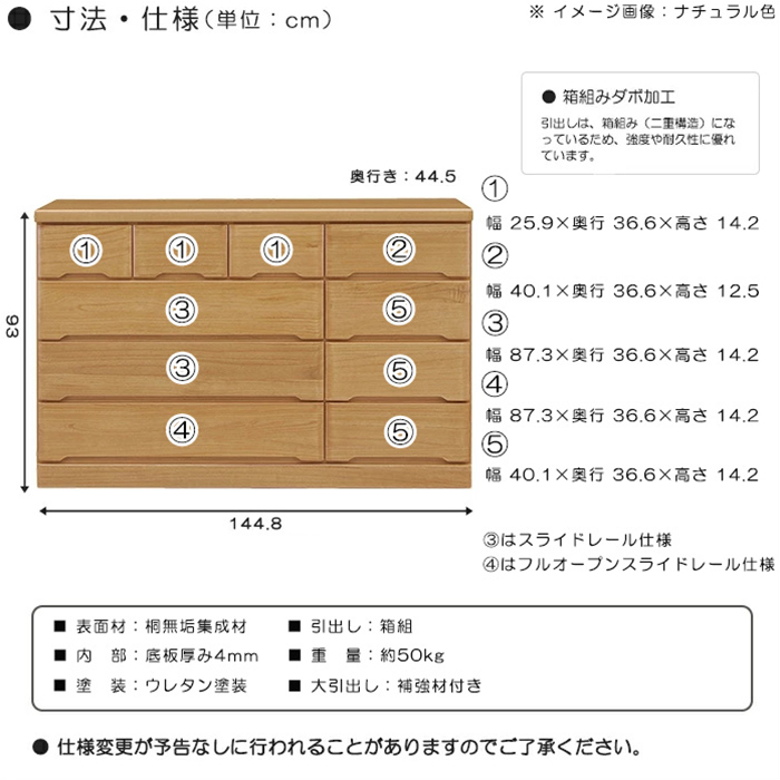 特  徴桐無垢集成材を使った、国産4段ローチェスト。