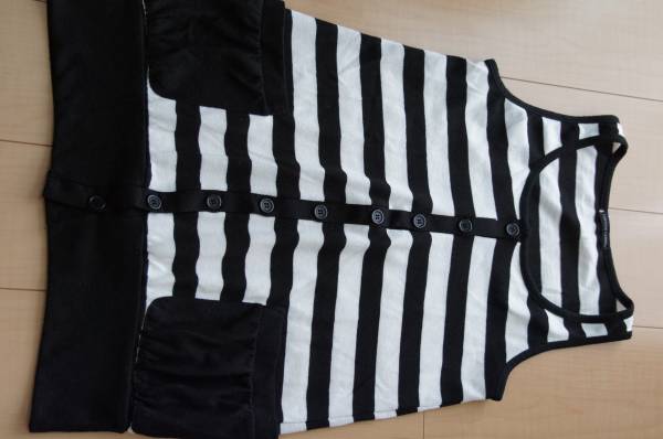 |    USEDのFORTUNE COOKIES白黒ボーダー袖なしチュニックになります。                   かわいいデザインでカジュアルに着こなせます。   多少の使用感はありますが、シミや色褪せ等はありません。   前ボタン開閉式で前面下部にはポケットが2ヶ所あります。   サイズ・・・ M (身長154~162 バスト79~87)   平置き採寸 : 着丈 75㎝ 身幅 45cm    発送方法:ゆうパック/ヤマト運輸/定型外郵便(補償はありません)   送料につきましては、まれに過不足が生じる場合があります。 不足した場合はこちらで負担しますが、多く頂いてしまった場合の返金は致しかねますのでご了承ください。 ※発送について・・・仕事の関係上、入金確認後日数を頂く事があると思います。 ご理解頂いた上、ご入札下さいますようお願いします。   (急ぎの方は入札をお控えください。)   ※PC環境や光の影響により写真の色は実物と若干違う場合もありますが、ご了承 下さい。   ※あくまでも新古品である事をご理解頂いた上、ご入札下さいますようお願いします。 神経質な方、評価が悪い方は入札をお控え下さい。 ※出品に際し、傷や色あせなど十分確認していますが、見落としがありましたらご容赦 下さい。   ※落札後はノークレーム、ノーリターンでお願いします。 ※その他質問等がありましたら、お気軽に質問してください。 ▼お願い▼ ◎新品未使用品でも、個人で所有しているものなので、ショップ等で販売されているような    完璧な状態とは違います。    また、美品でもUSEDですので個人の見解に相違があります。    完璧なものをお求めになる方は入札をご遠慮下さい。 ◎迅速かつスムーズなお取引をするため、原則落札後24時間以内に連絡ができる方、    3日以内にご入金ができる方のみ入札をお願いします。    この期限を超過しましたら、入札を取消させていただきますのでご了承ください。   ◎発送や包装の袋等はエコと費用削減の観点から再利用いたします。    あらかじめ御了承ください。     | |