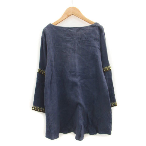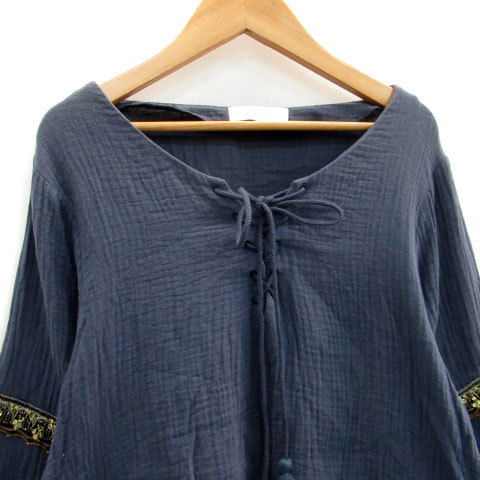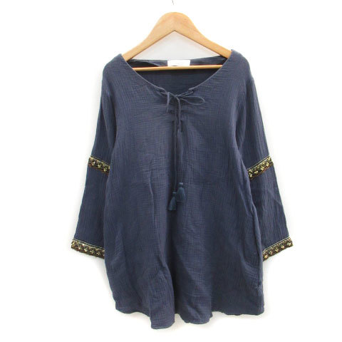 ヴィセンテ Vicente チュニック 長袖 ラウンドネック リボン ビーズ スパンコール F ブルー 青 /MS44 レディース
