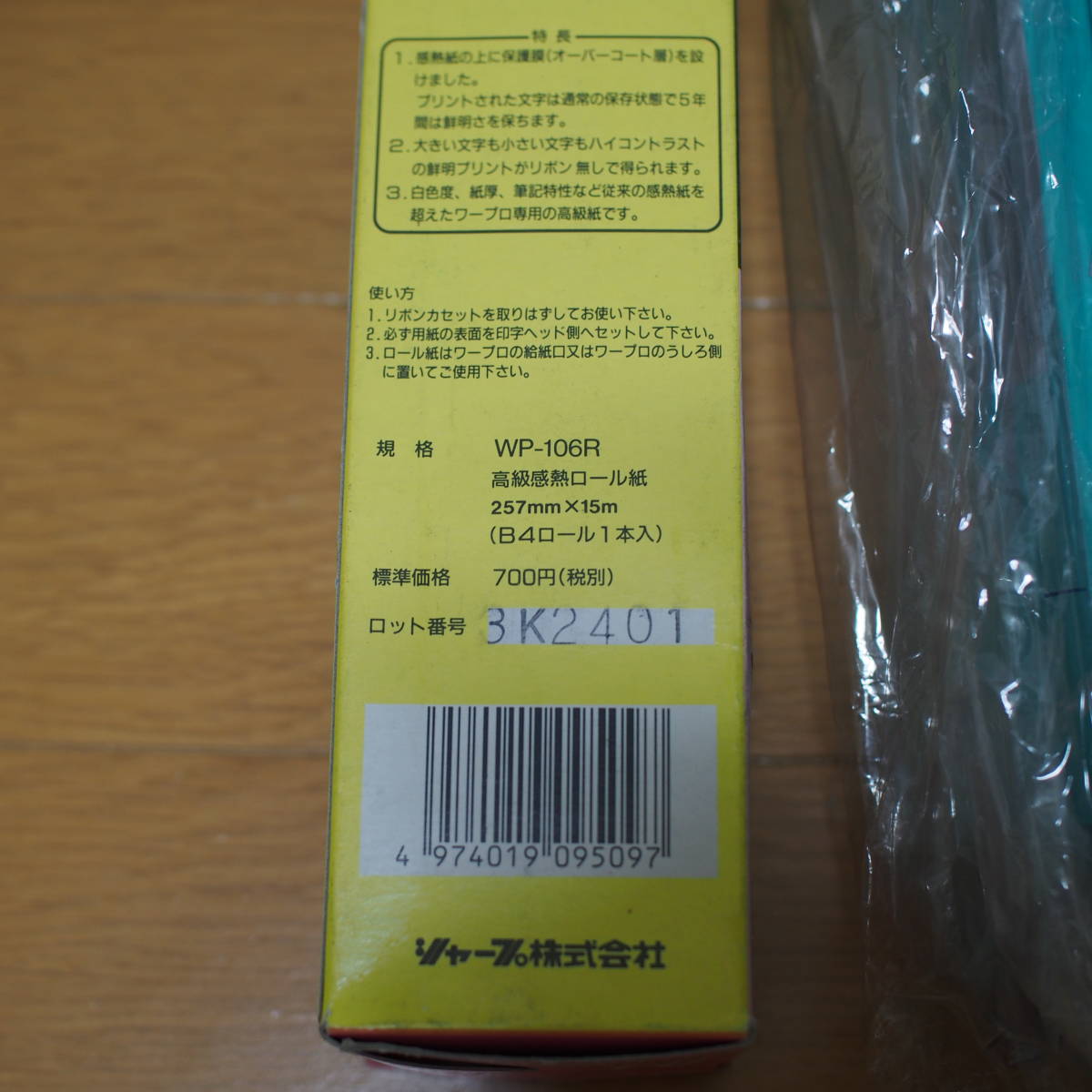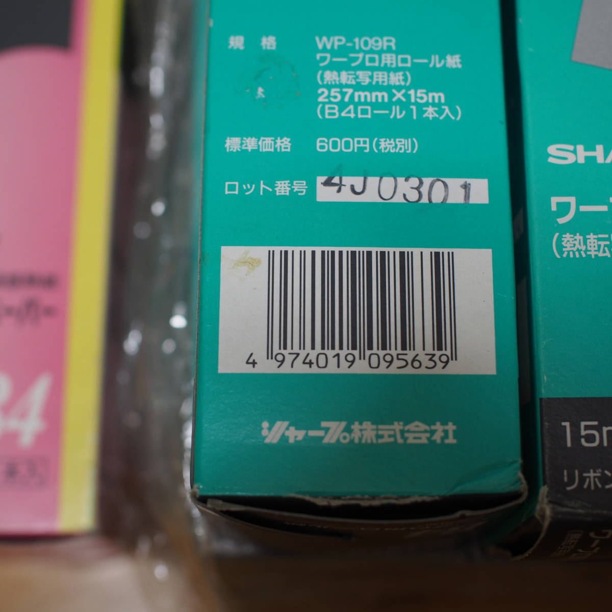 SHARP ワープロ用ロール紙 シャープ WP-109R×8本 +WP-106R×1本 まとめ 熱転写用紙 B4未使用 保管品 現状品 セット