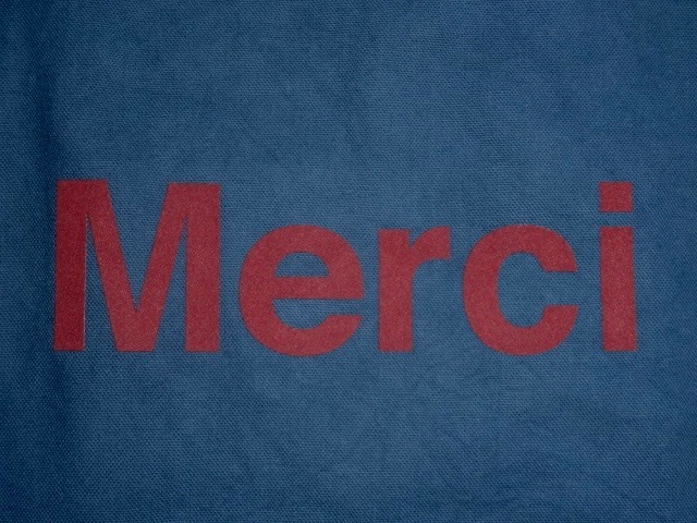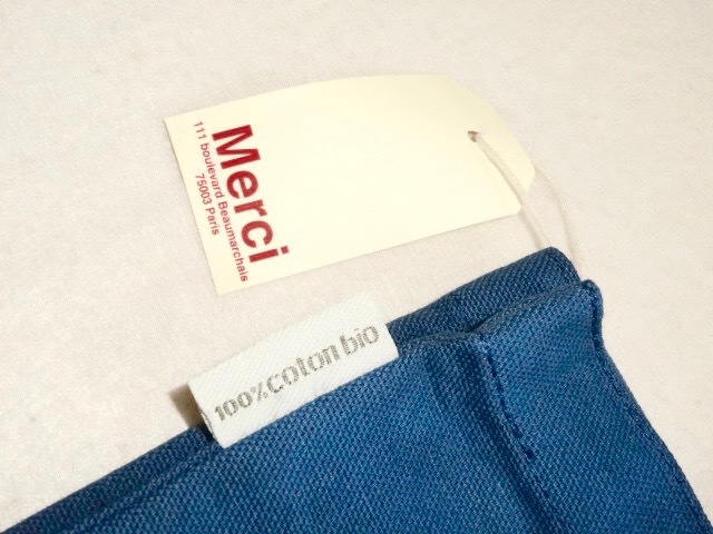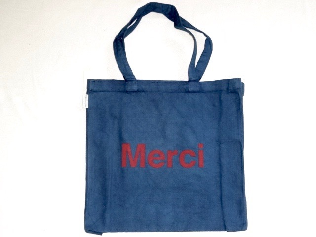 ● 日本未発売 Merci メルシー フランス パリ 人気セレクトショップ トートバッグ ネイビー 新品 オーガニック コットン ユニセックス ロゴ
