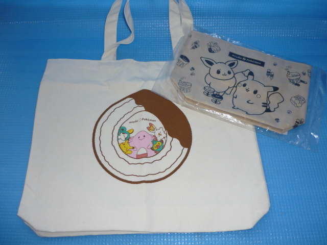 D★未使用・非売品★ミスド×ポケットモンスター トートバックとピカチュウ&イーブイ ミニトートバッグ | |