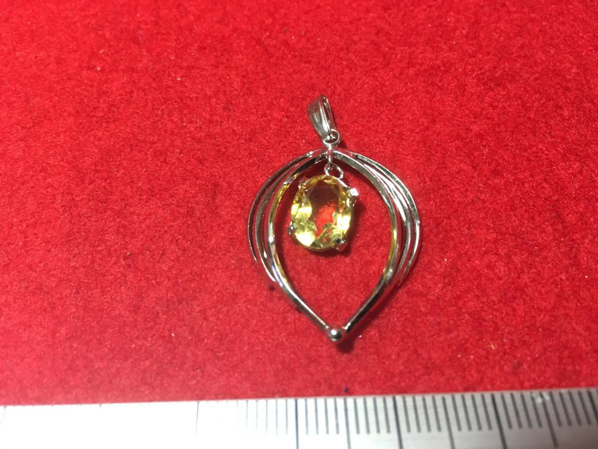 新品 装飾品 宝飾品 ゆらゆら揺れて綺麗にキラキラ輝く 天然石 ネックレストップ チャーム ペンダント トップ 銀色 シトリン石 楕円型 部品