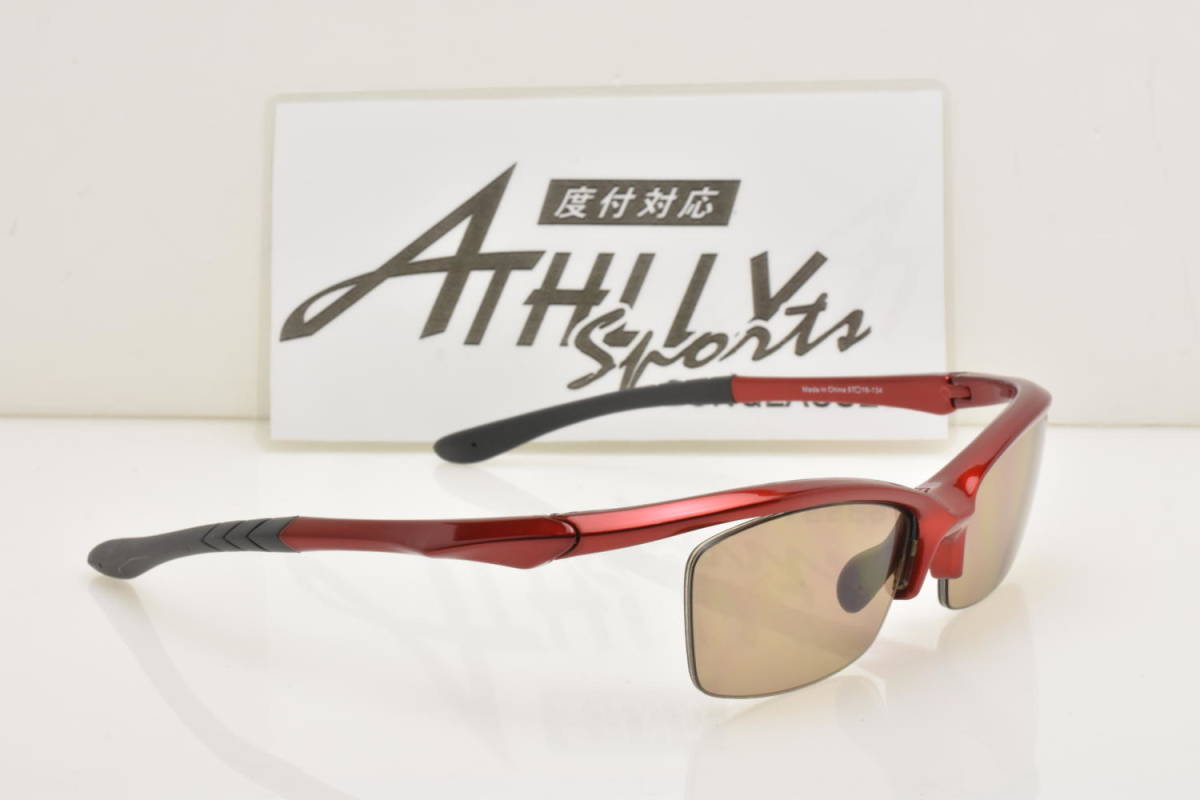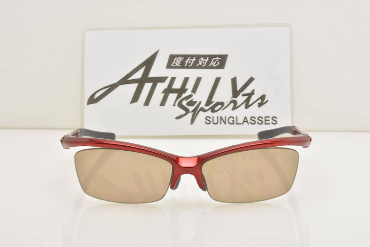 ★新品・在庫処分!ATHLLY アスリー スポーツサングラス AT-6015 C-3 メタルレッドレッド ブラウン  度付対応フレーム★