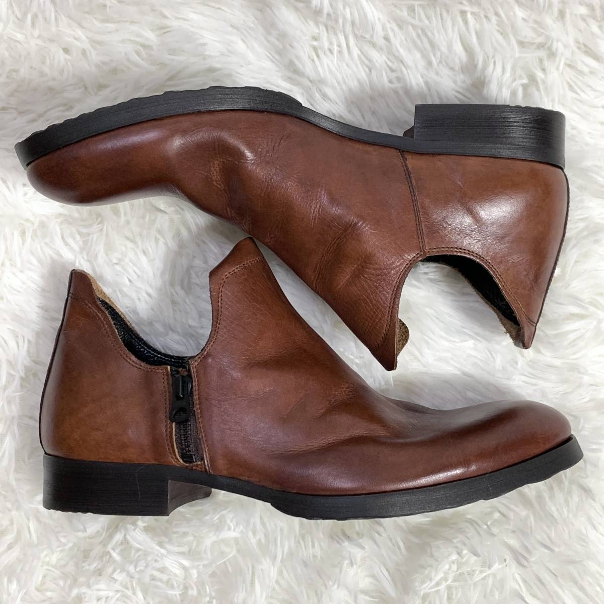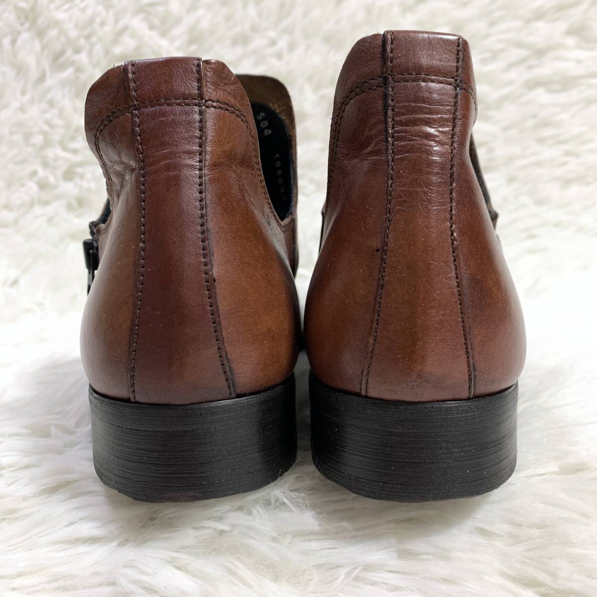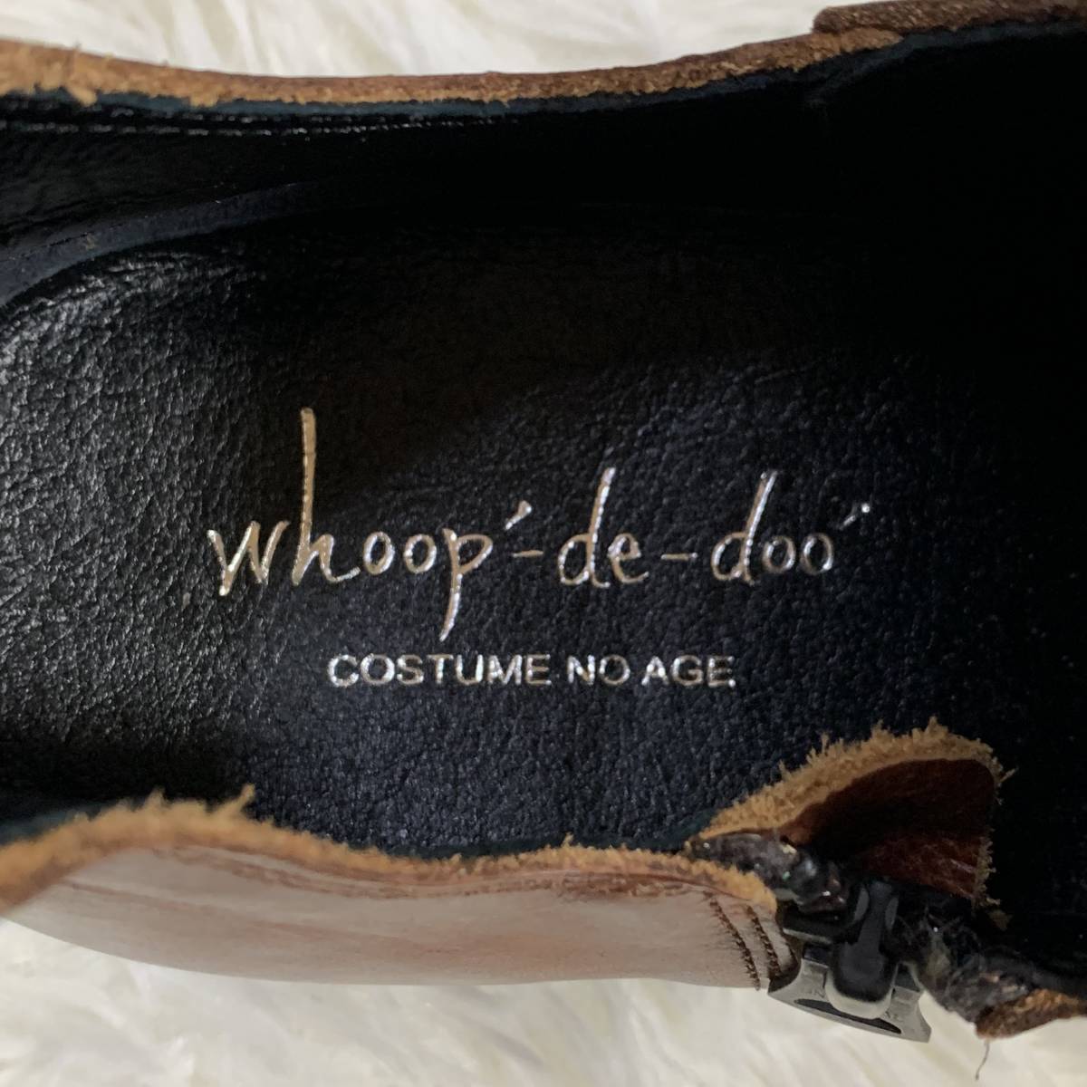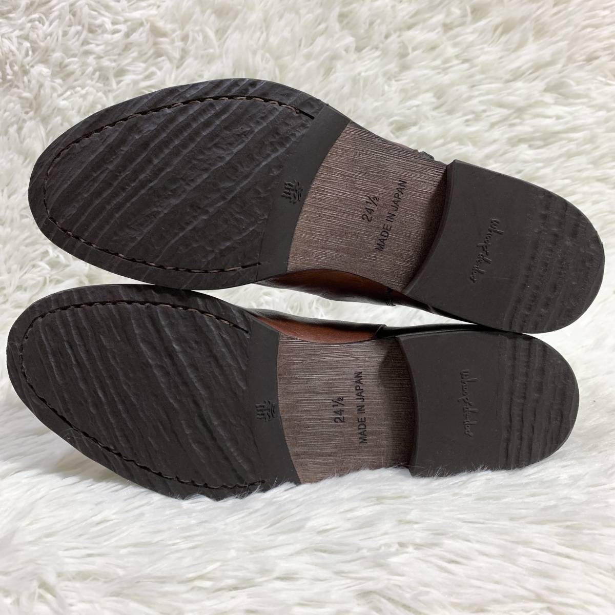 【試着程度】whoop'-de-doo' フープディドゥ シャーリングスリッポン 105031 サイドジップレザーシューズ 日本製 ダークブラウン 茶 24.5