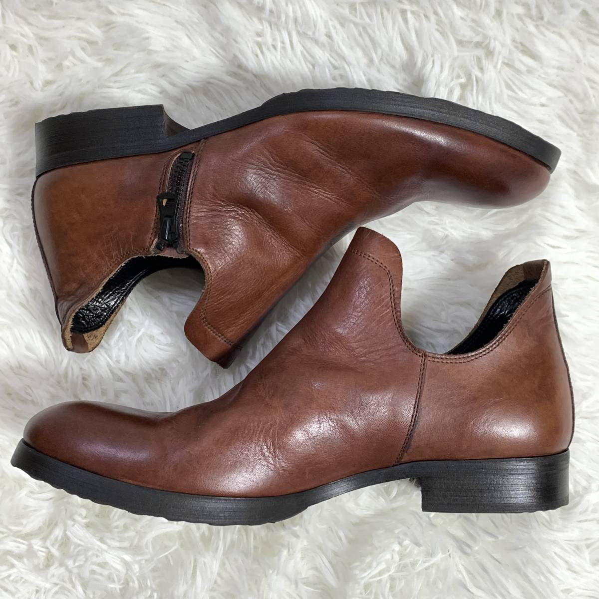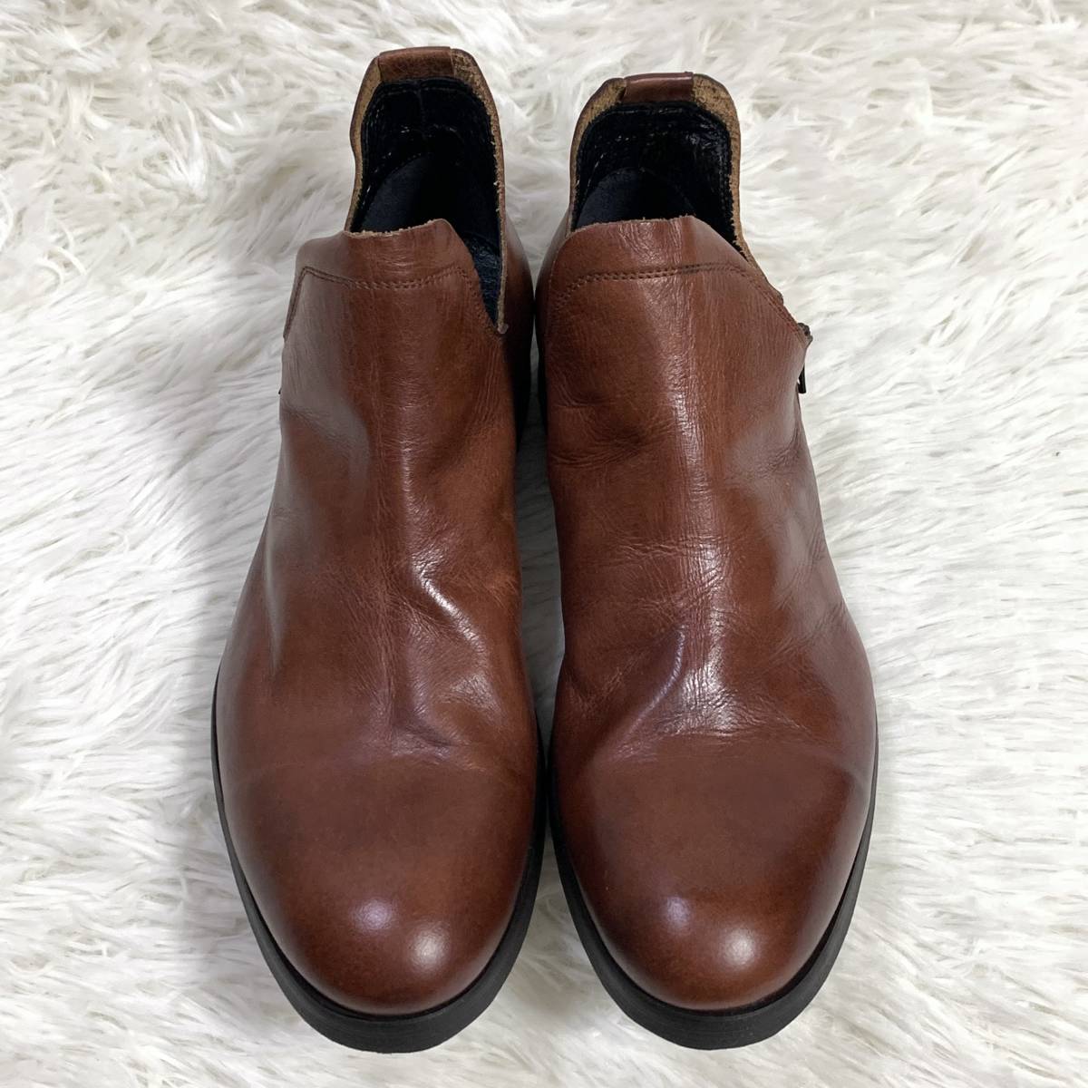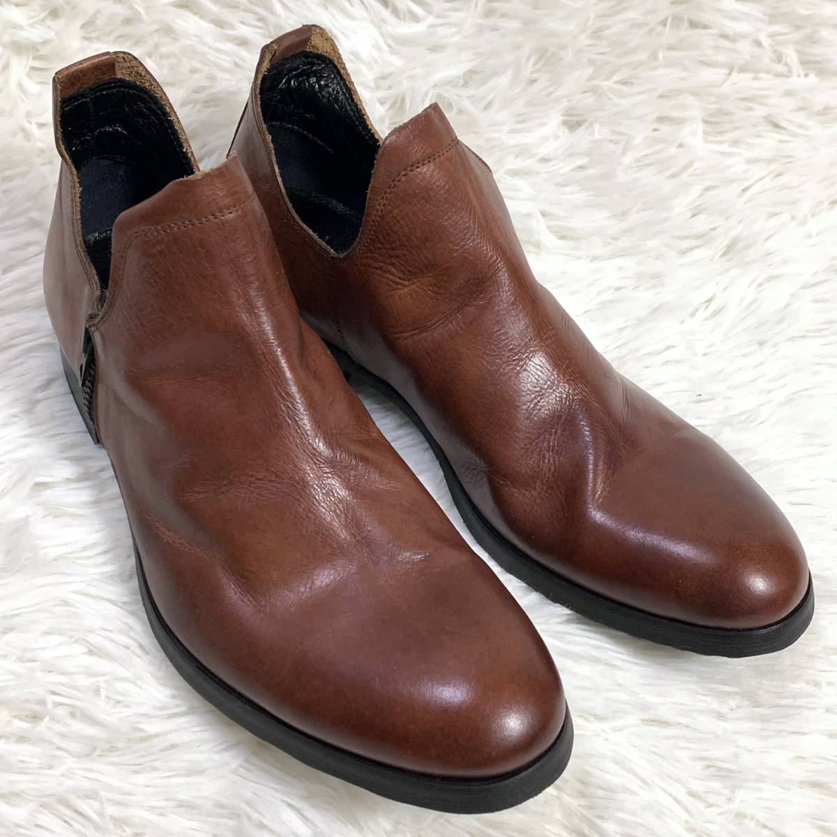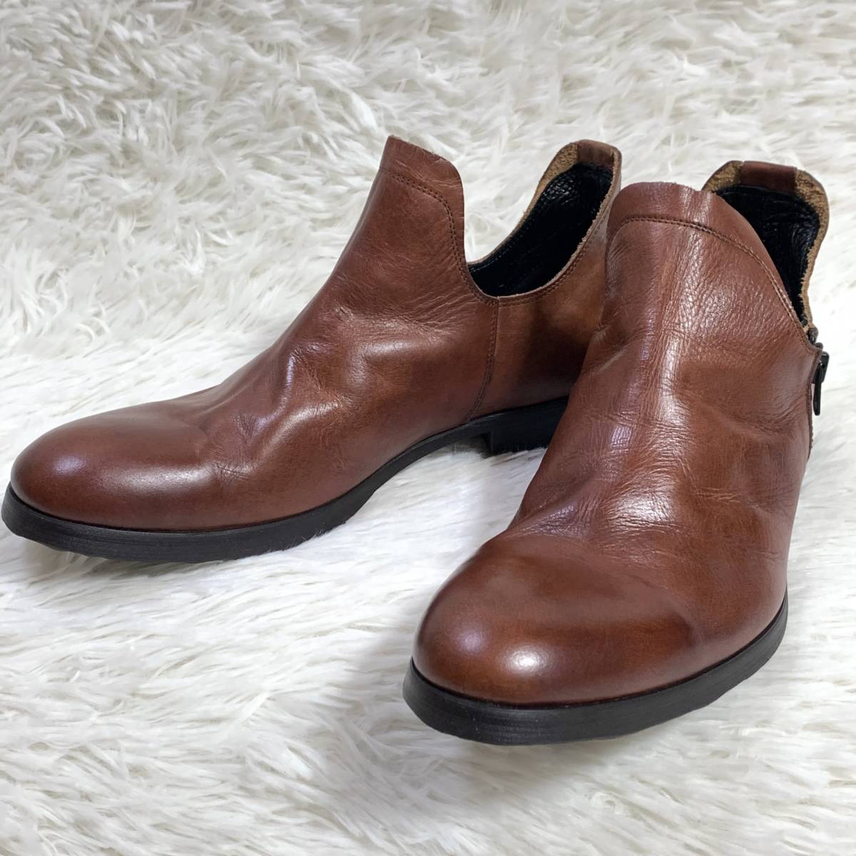 【試着程度】whoop'-de-doo' フープディドゥ シャーリングスリッポン 105031 サイドジップレザーシューズ 日本製 ダークブラウン 茶 24.5