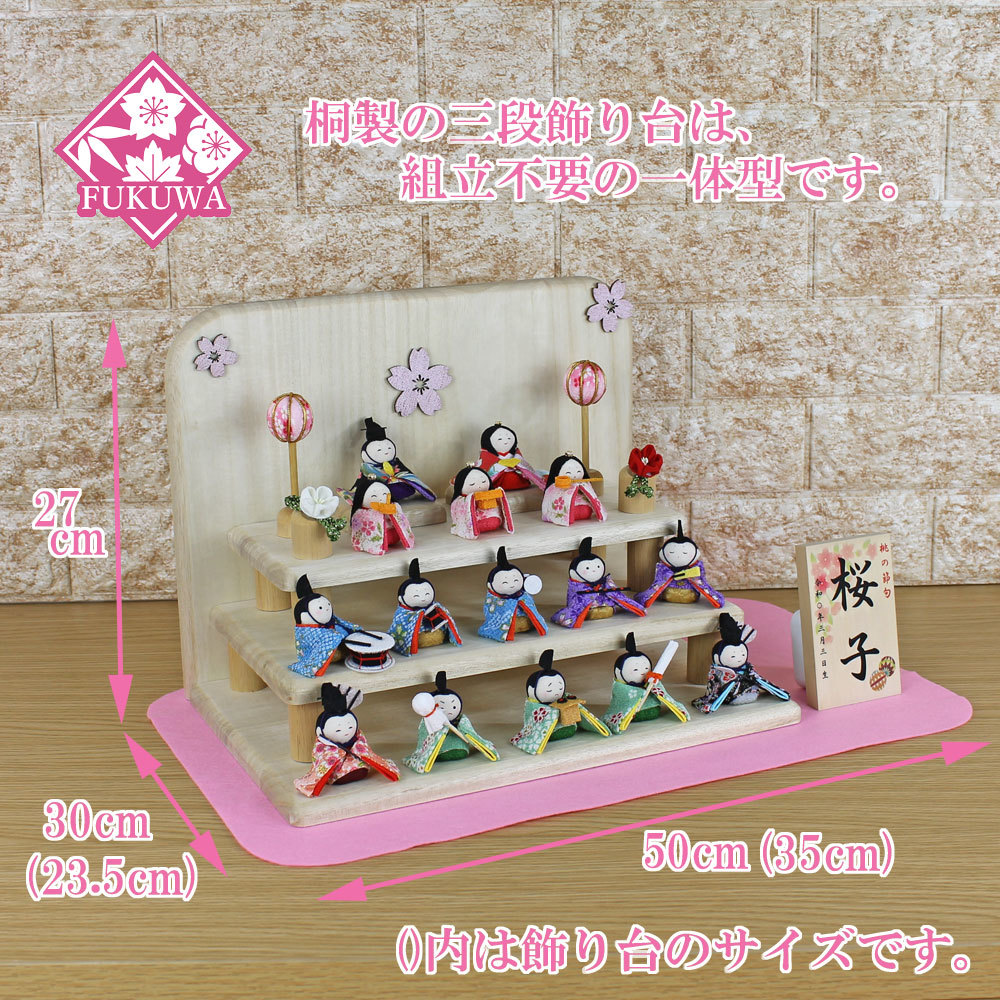 お人形などを並べるだけで簡単に飾って頂けます。