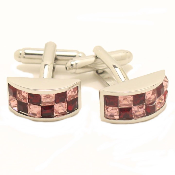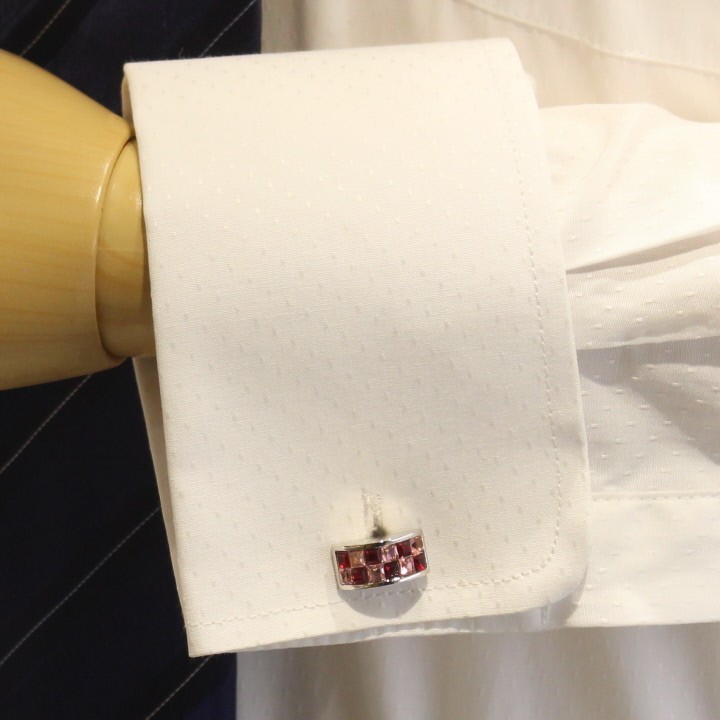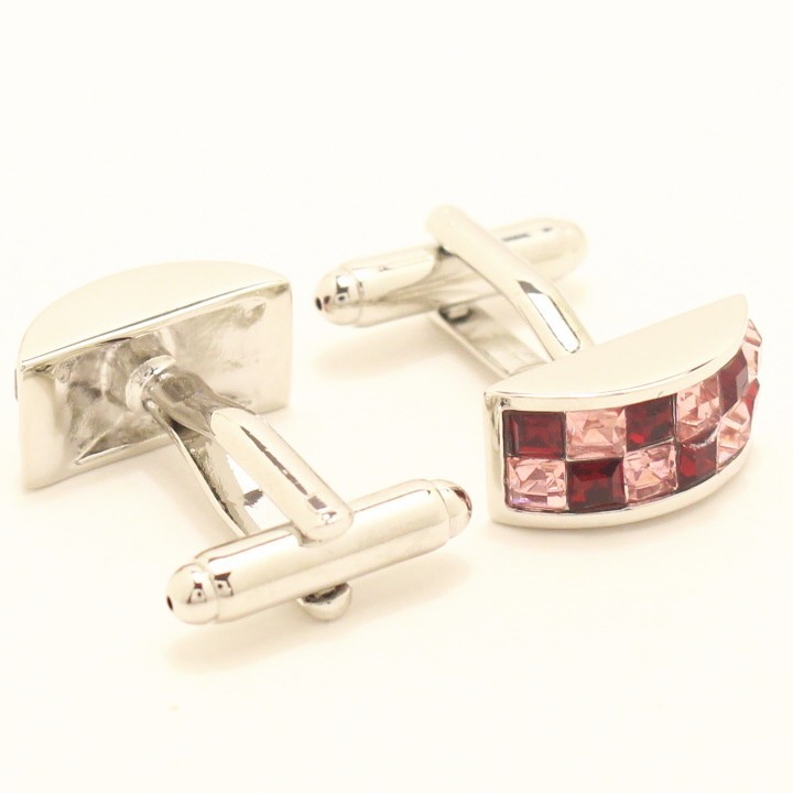 ピンク&赤のガラスがゴージャスなアーチ型カフス。