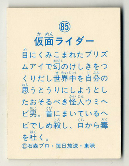 | ●山勝 仮面ライダー ミニカード 85番 石森プロ・毎日放送・東映 即決 | |