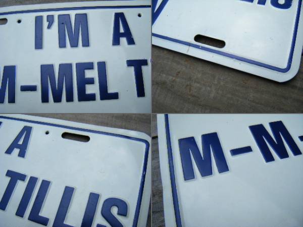 こちらは、ビンテージのアメリカ製ナンバープレートとなります。「I'M A M-M-MELT TILLS FAN 」と記されております。詳細は不明です。コレクターよりお譲り頂いた古くて貴重なお品です。店舗ディスプレイや部屋の飾りにどうぞ。セカンドハンド品につき他にも傷、汚れなどございます。画像にて状態をご確認の上、ご了承の上、ご入札下さい。(*^-^*)