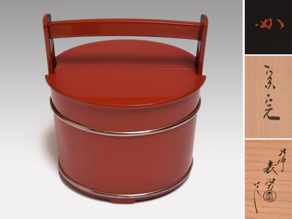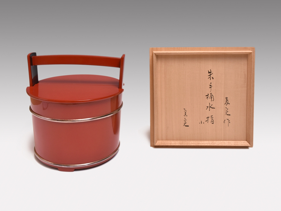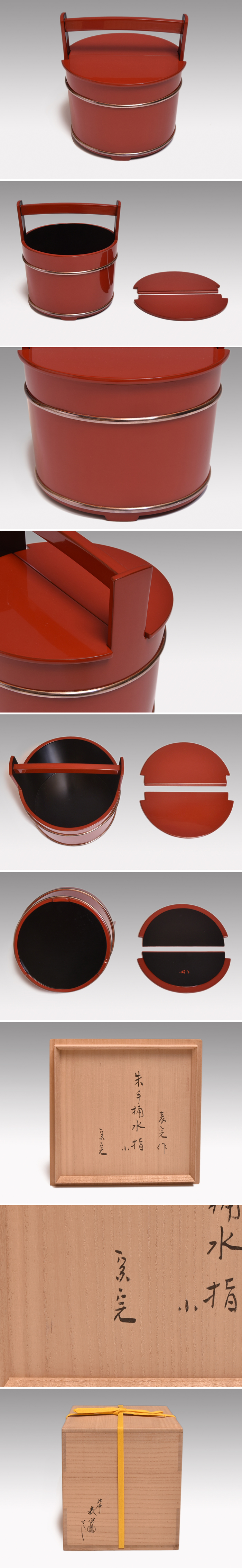 朱手桶水指 銀タガ入 塗師 川瀬表完(作) 共箱 堀内宗完在判箱書 未使用 茶道具 |
