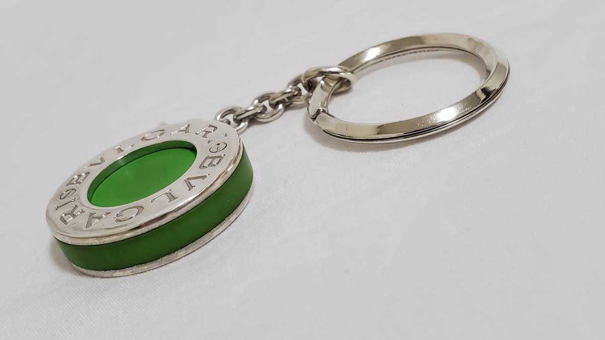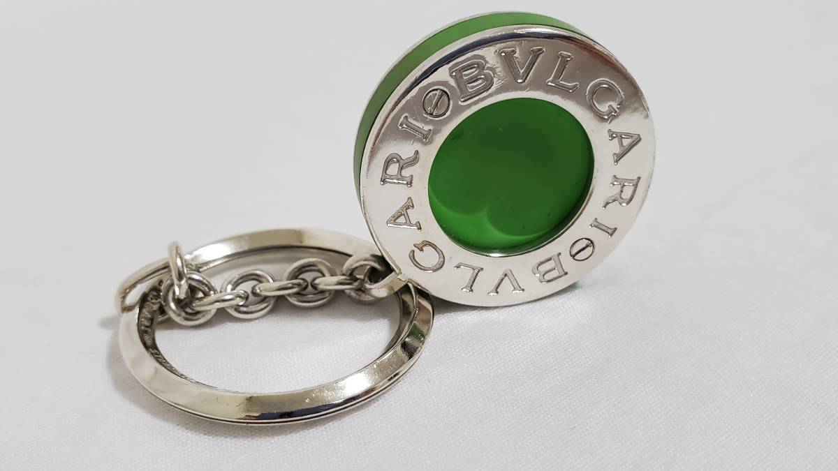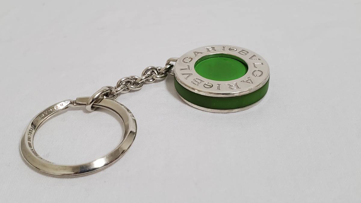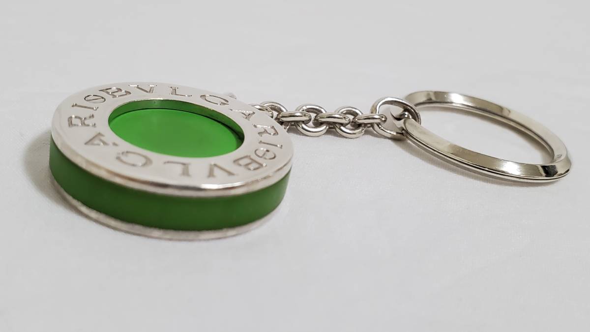 正規 ブルガリBVLGARI B-zeroロゴ ラージLサークルコンビキーリング 緑 SV マルチチャーム チェーンキーホルダー クラシックラグジュアリー