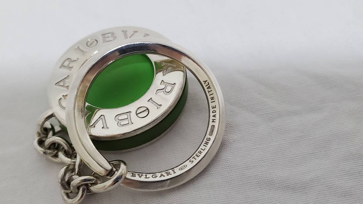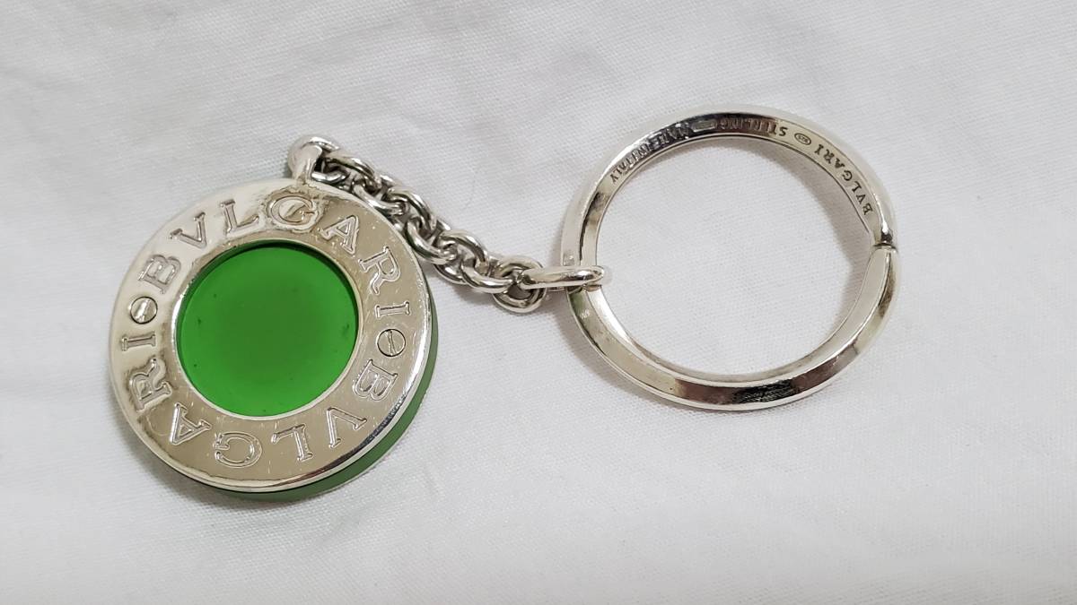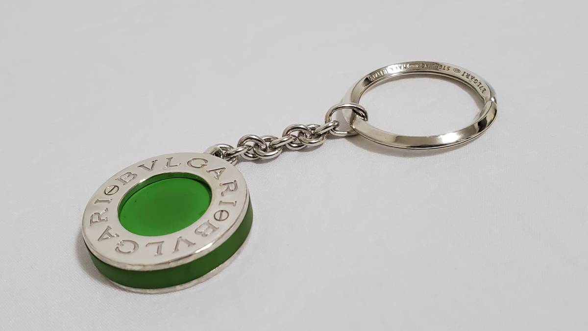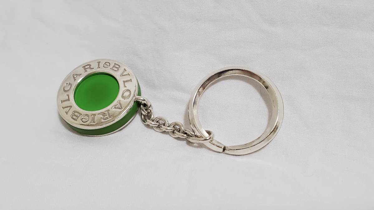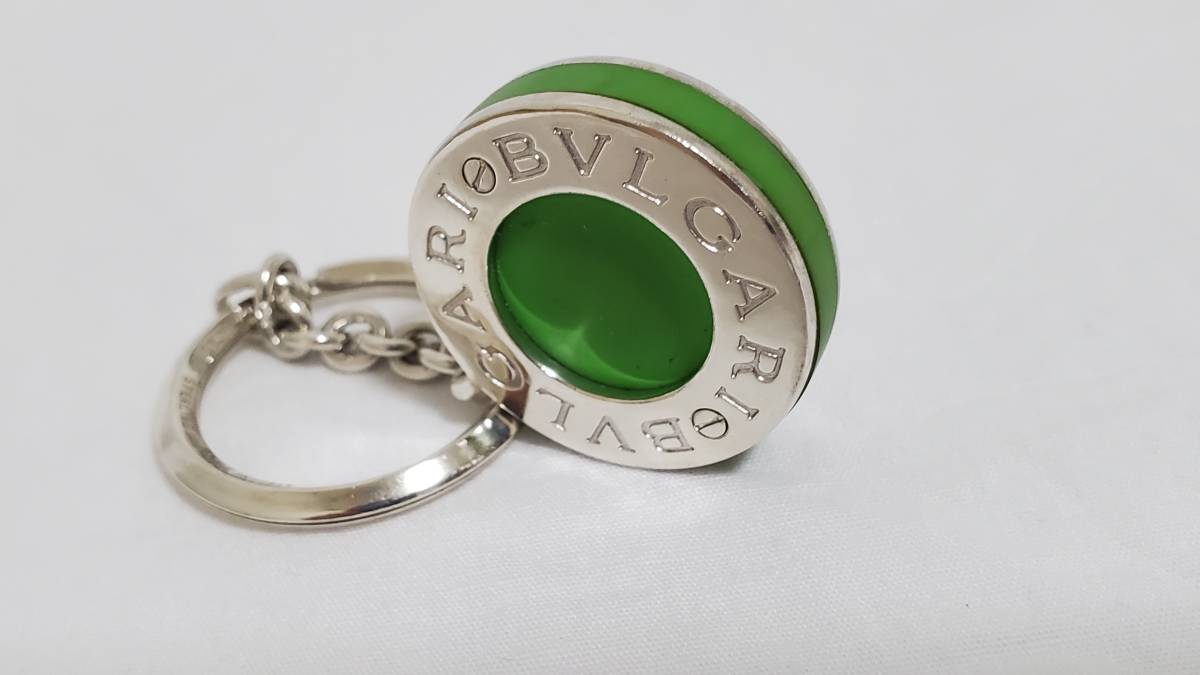 正規 ブルガリBVLGARI B-zeroロゴ ラージLサークルコンビキーリング 緑 SV マルチチャーム チェーンキーホルダー クラシックラグジュアリー