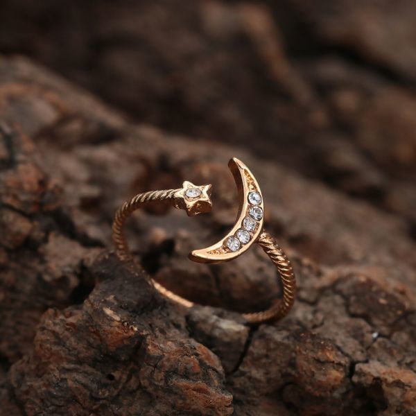 リング 指輪 ムーン スター ゴールド 調節可能 クレストムーン バゲストレッチ 結婚 ムーンスターリング 女性 花嫁 チャーム ギフト