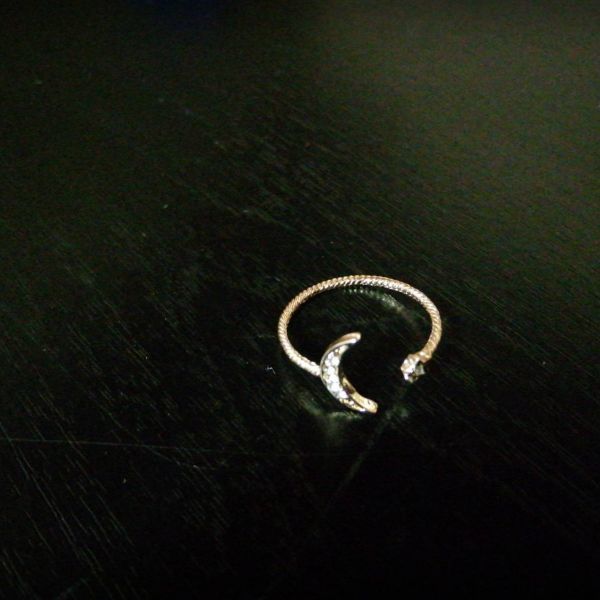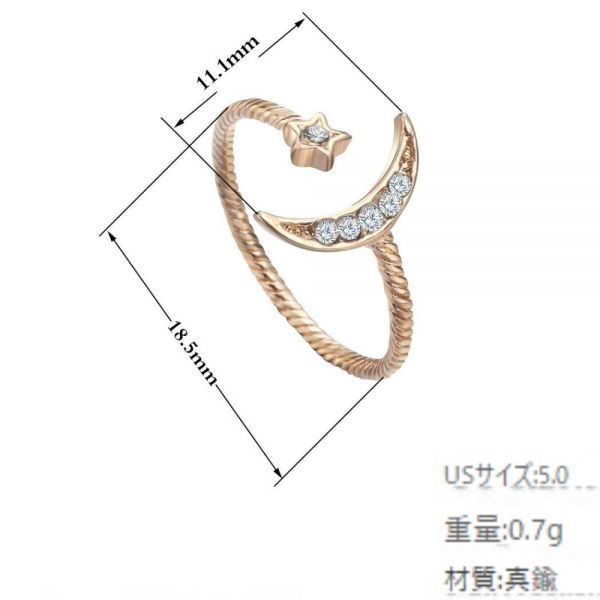 リング 指輪 ムーン スター ゴールド 調節可能 クレストムーン バゲストレッチ 結婚 ムーンスターリング 女性 花嫁 チャーム #C113-2
