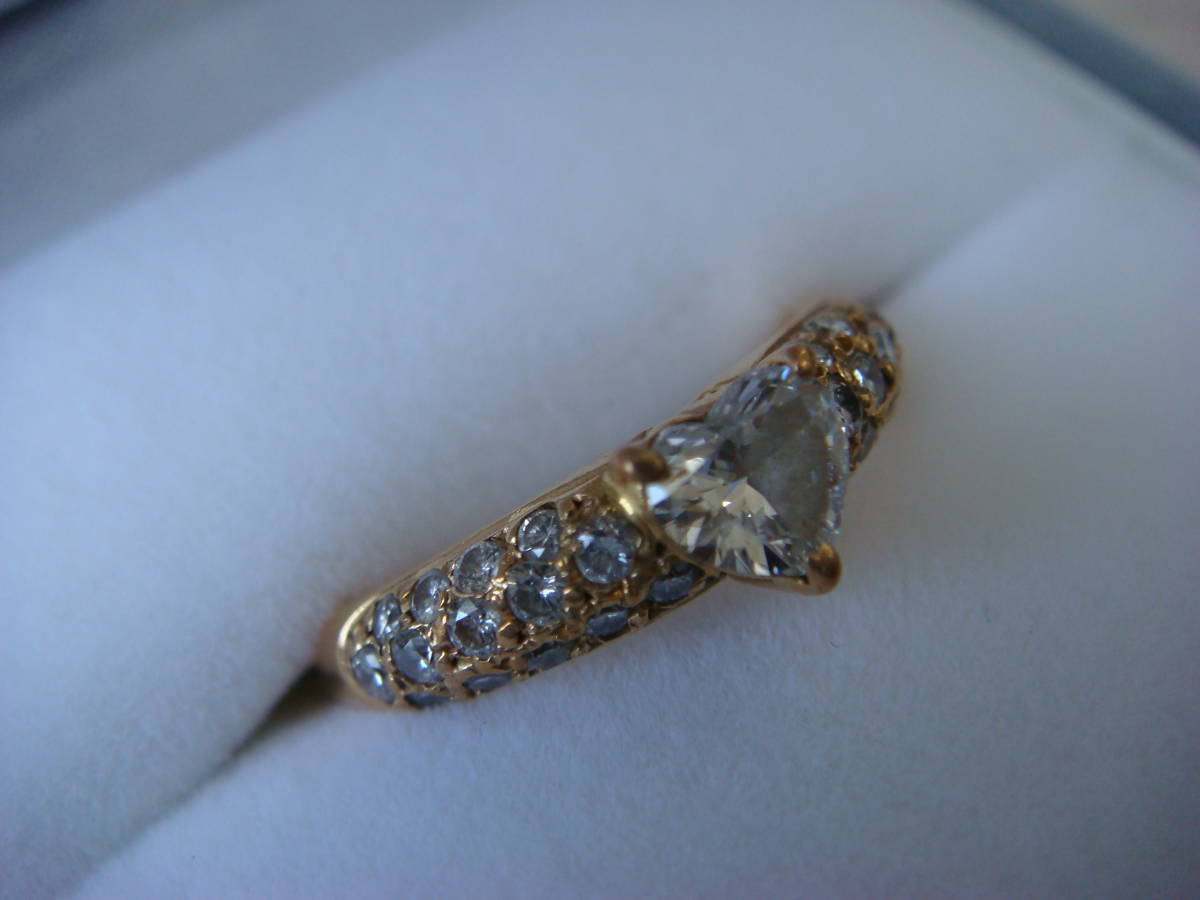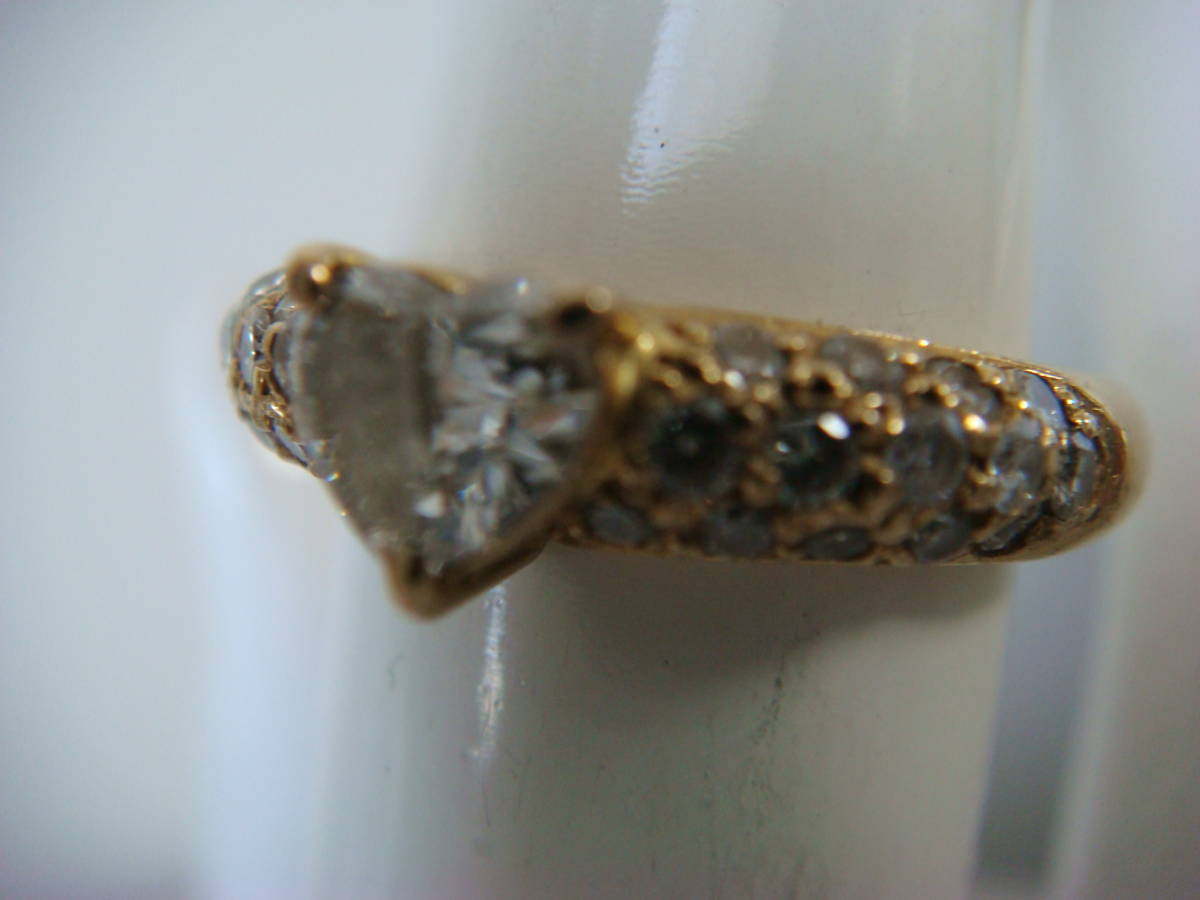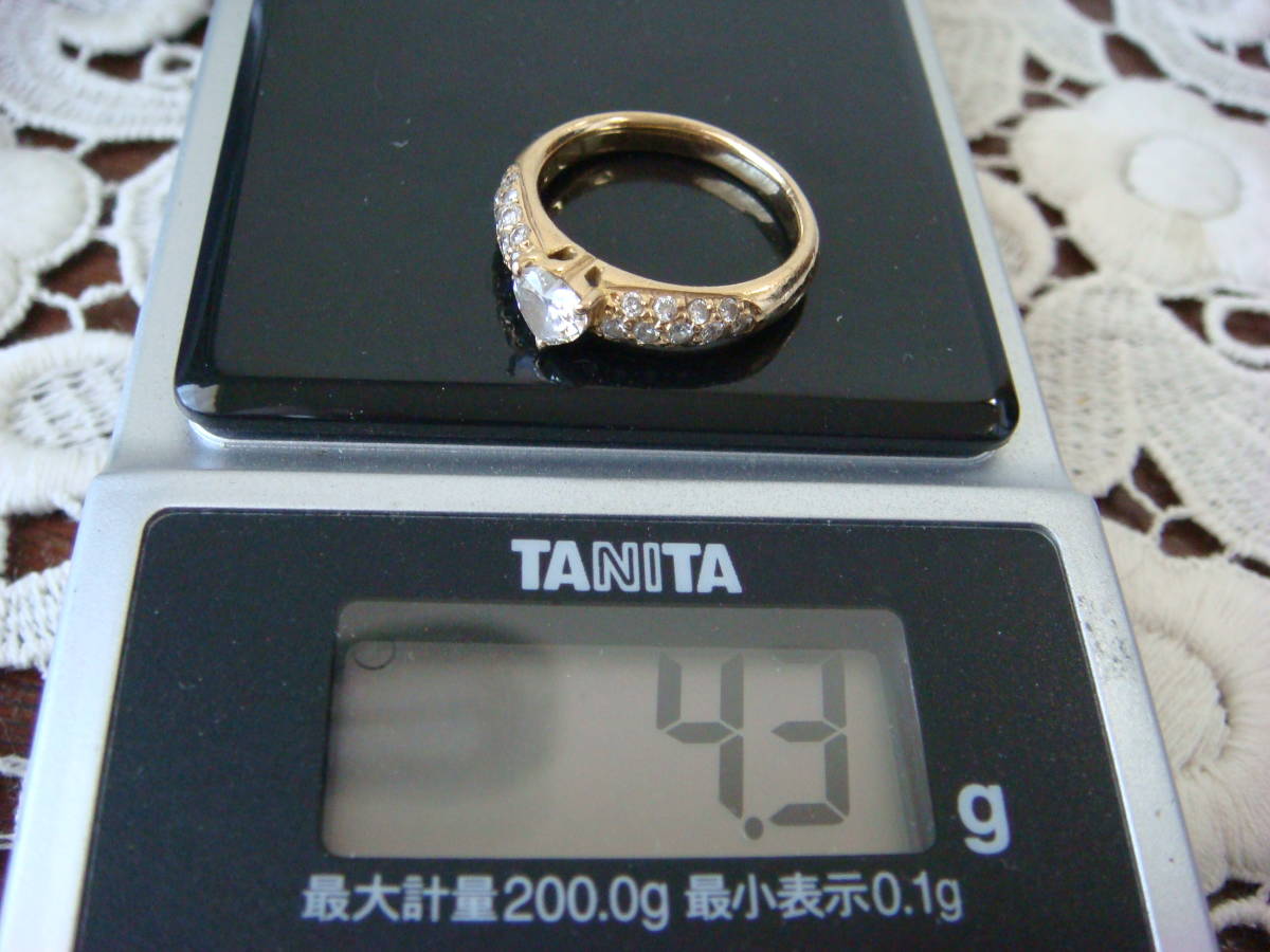 珍しいハートの形をしたダイヤモンドリングです。サイズは約7です。18金製です。K18の刻印入り。