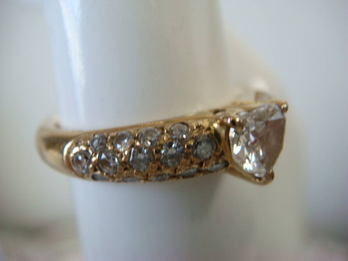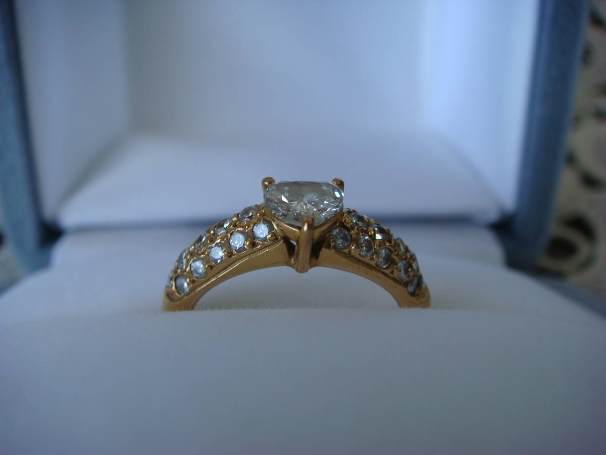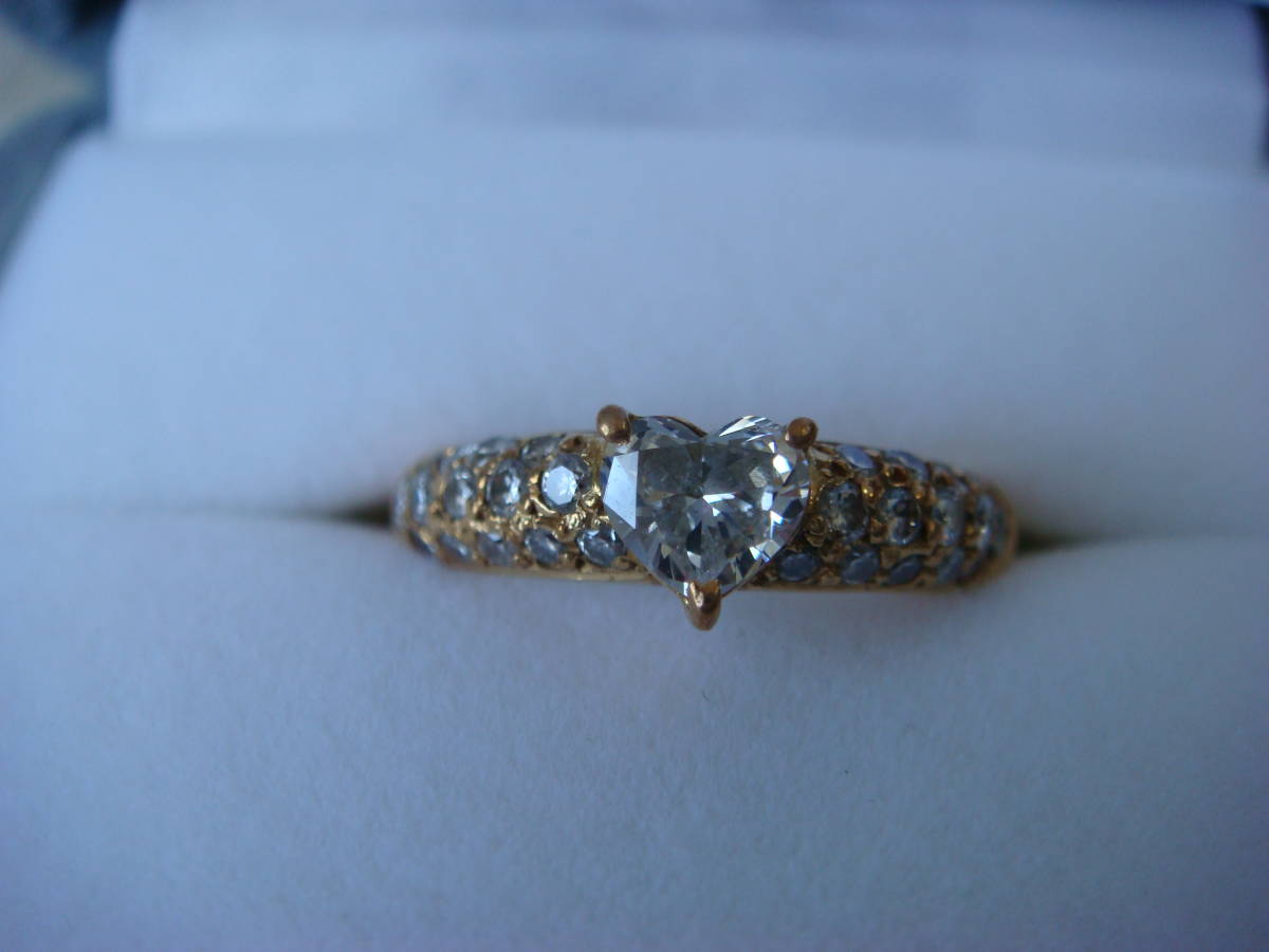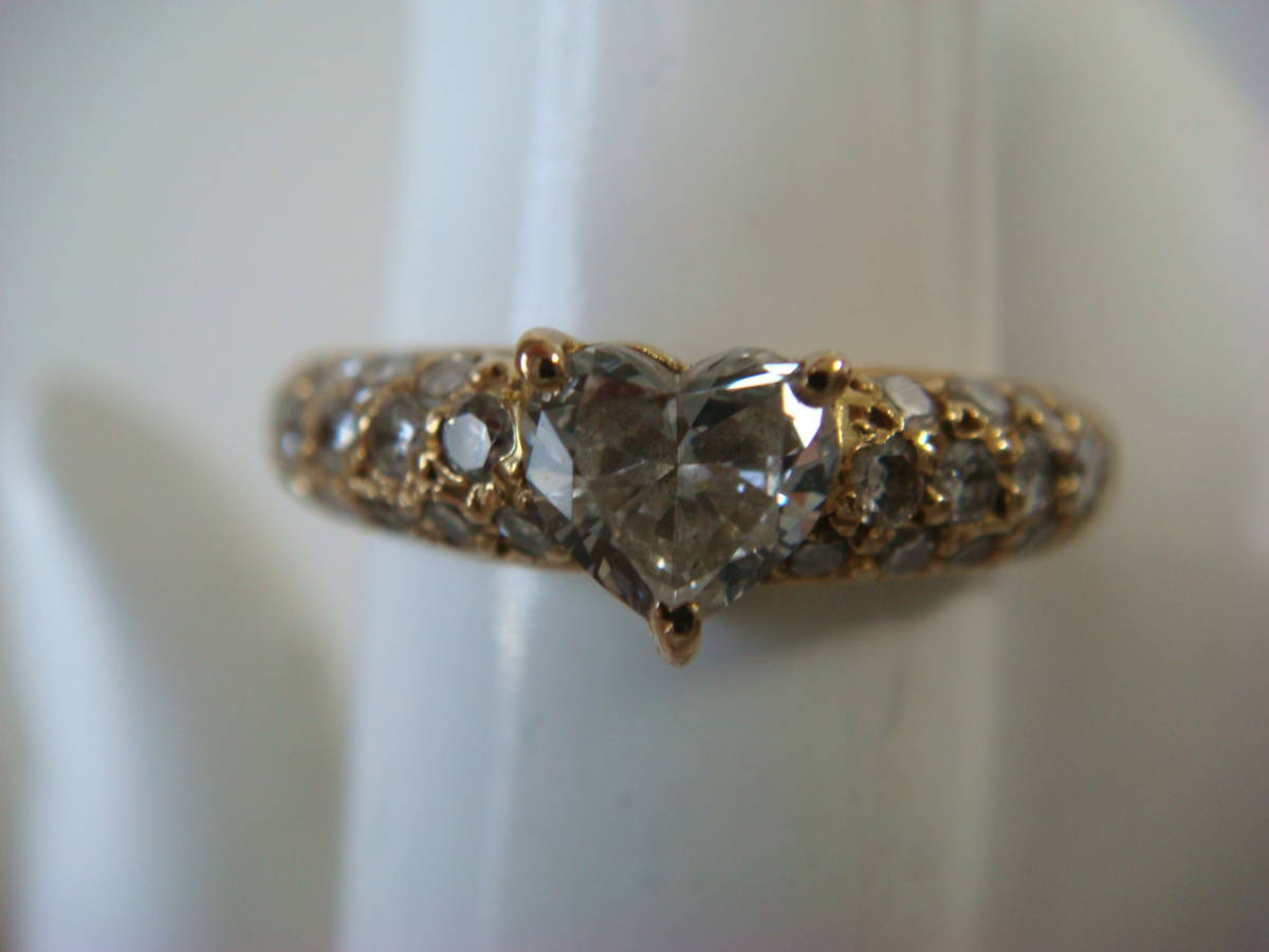 珍しいハートの形をしたダイヤモンドリングです。サイズは約7です。18金製です。K18の刻印入り。