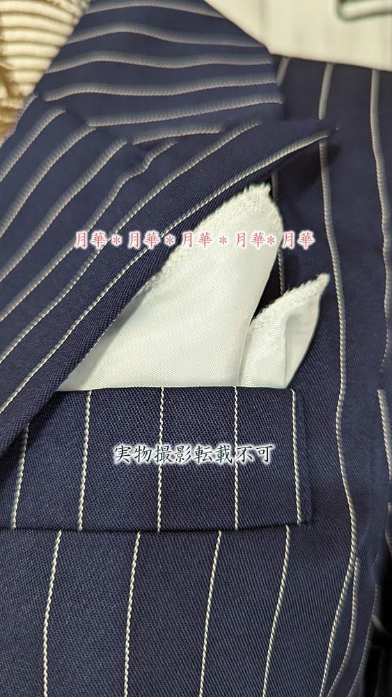 ※白いポケットチーフ有。袖口折り返しできますが、ボタン穴の周りが青く染まって見えるので、折り返して着るのは推奨しません。