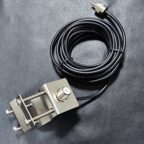 【送料無料■即決】set 新品 モービルアンテナ 基台 銀 + 同軸 ケーブル 5m セット /取付け ステンレス製 アンテナ パイプ ステー ミラー