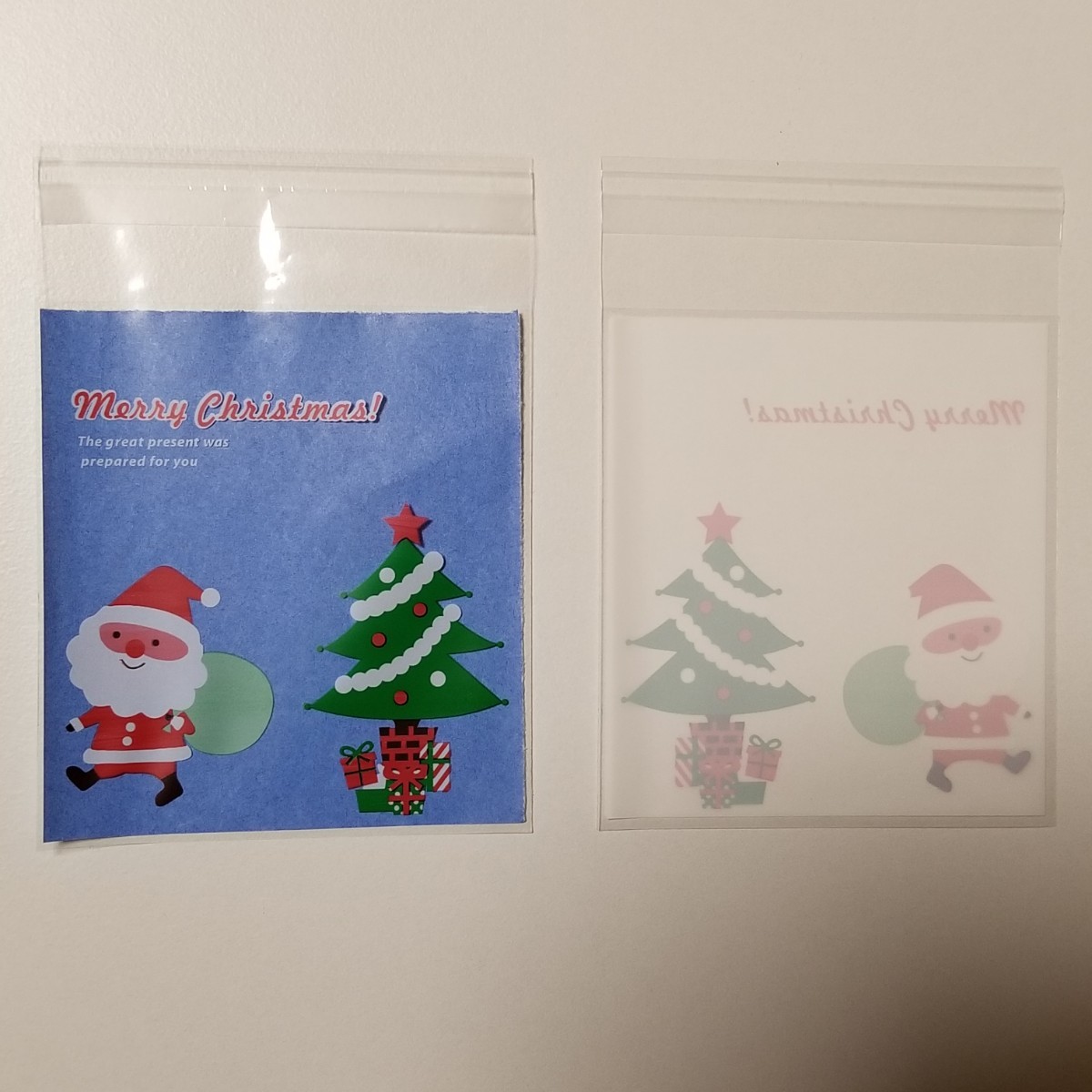 表は透明でそれぞれクリスマスリースとサンタの絵が描かれています。