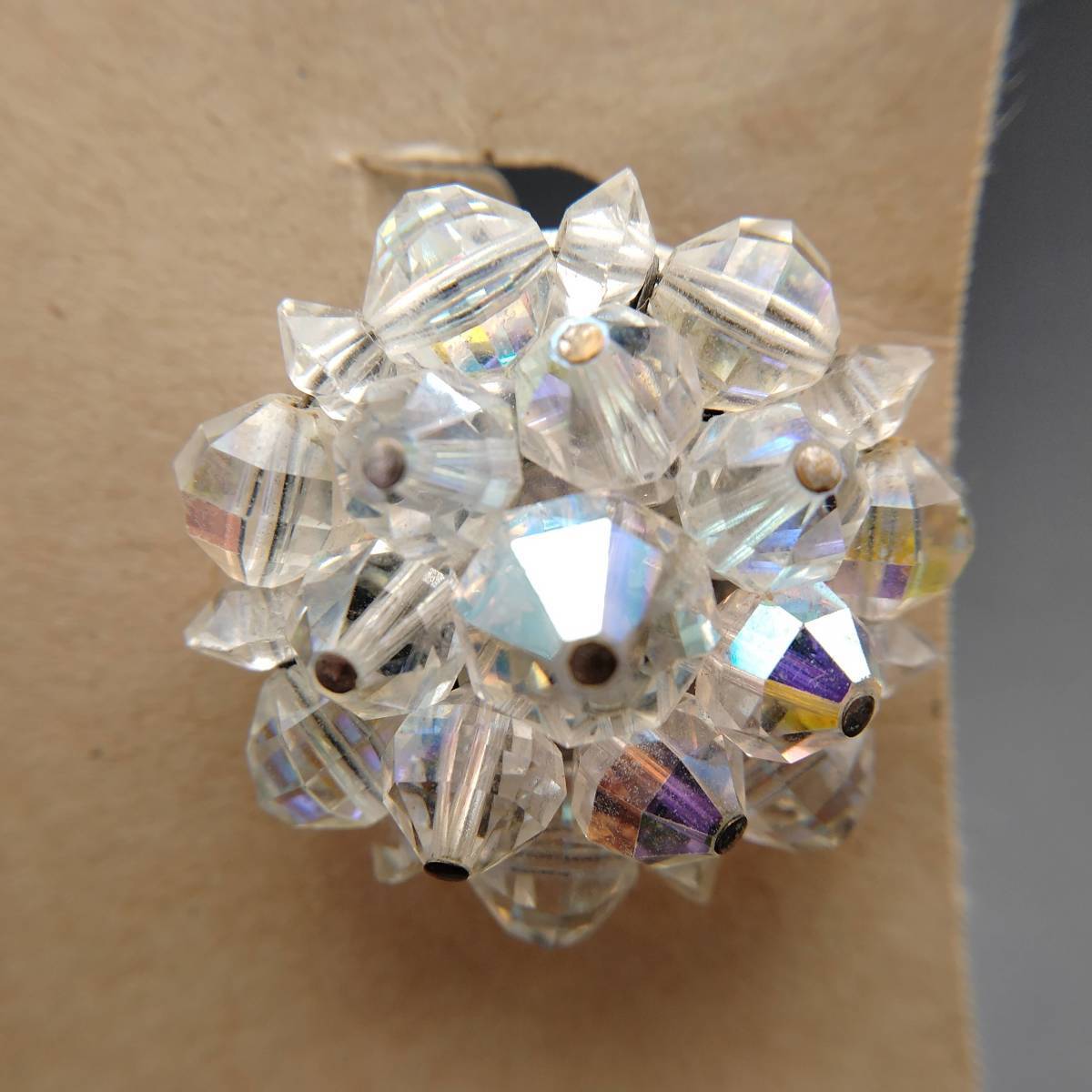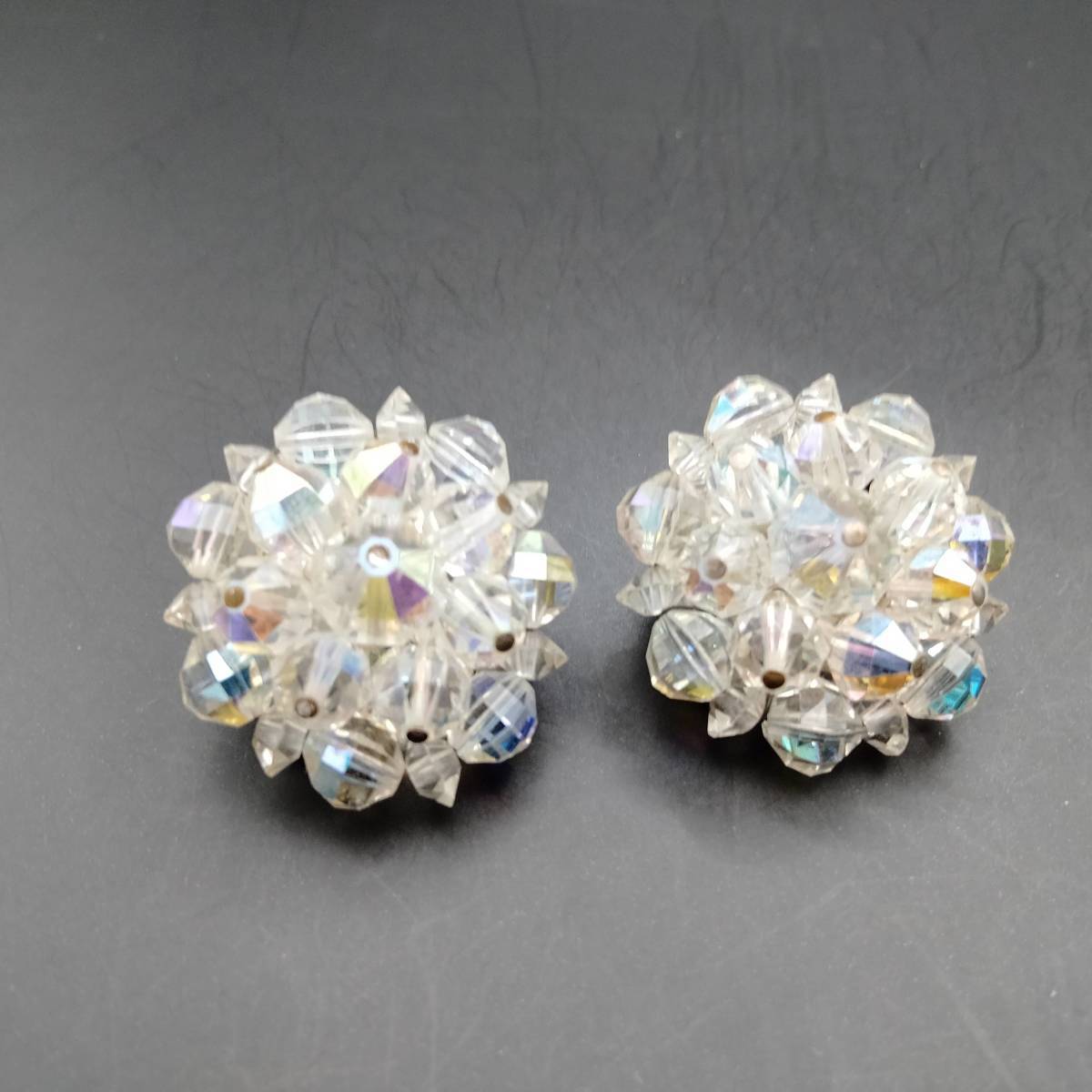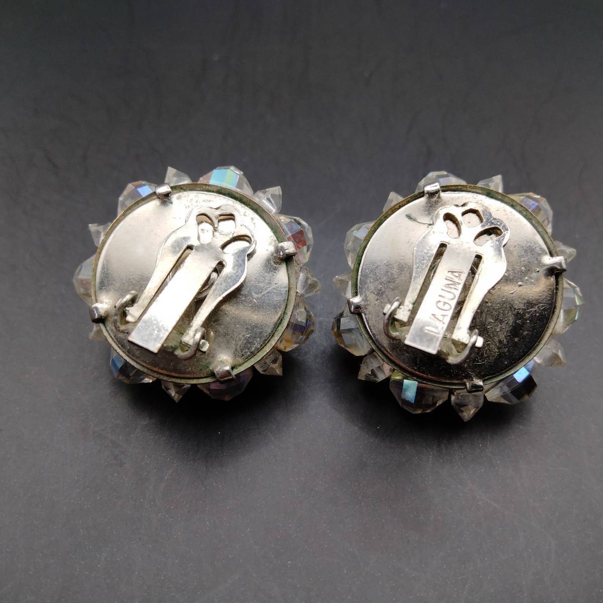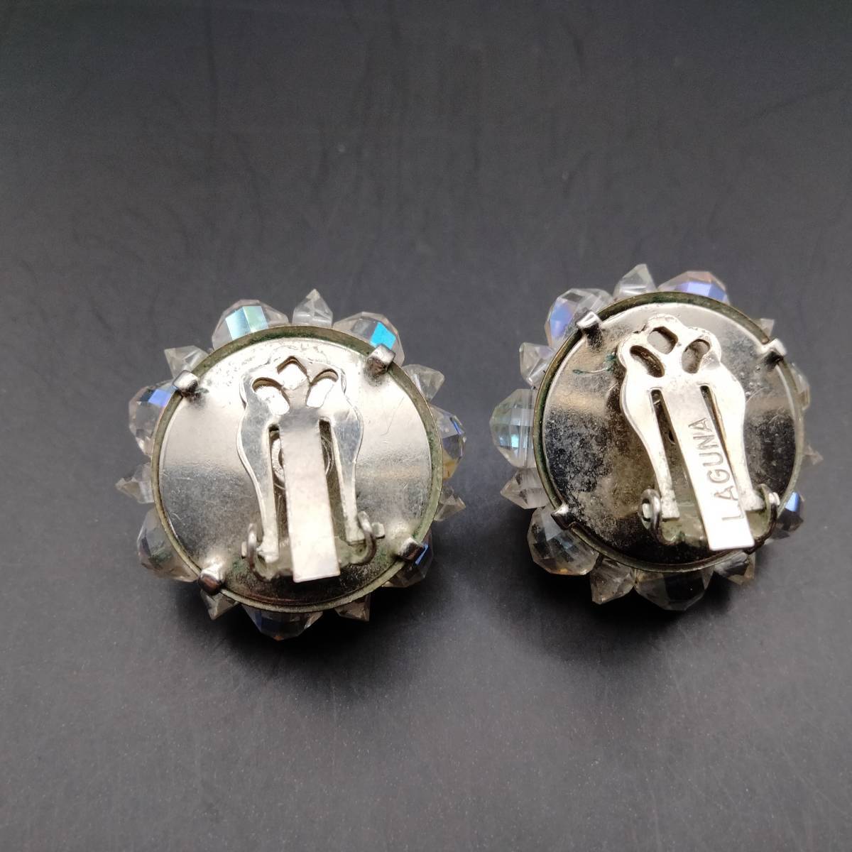 LAGUNA フラワー クリアビーズ シルバートーン ビンテージ イヤリング アールデコ 昭和レトロ コスチューム ジュエリー USA輸入 YMX19