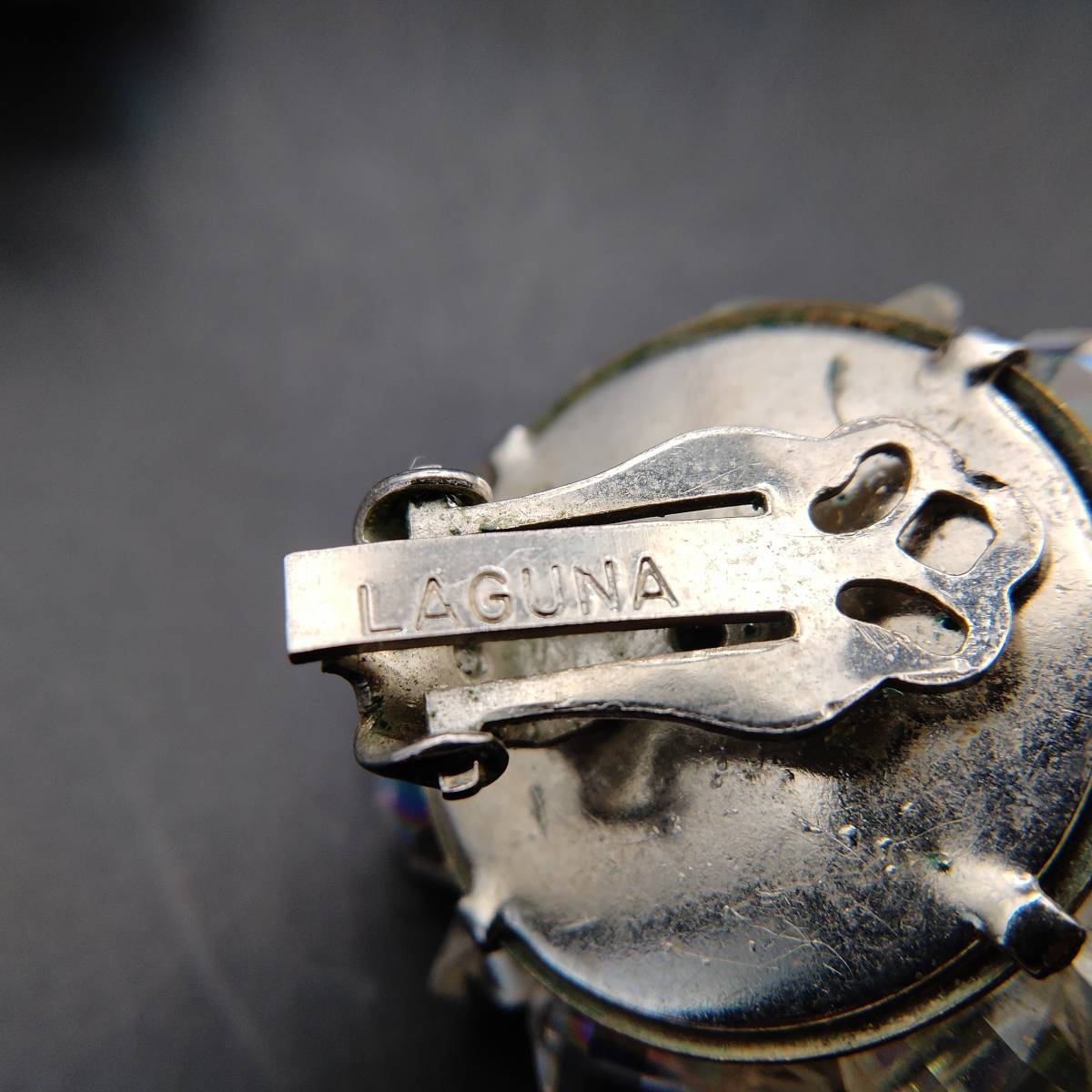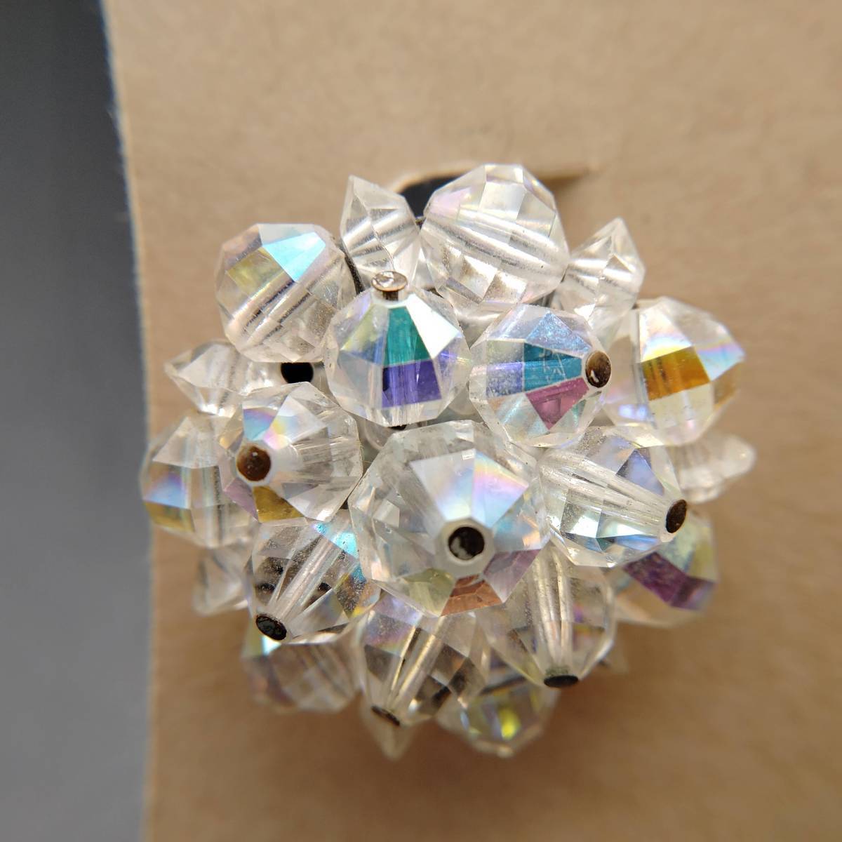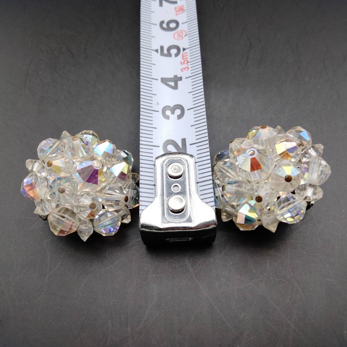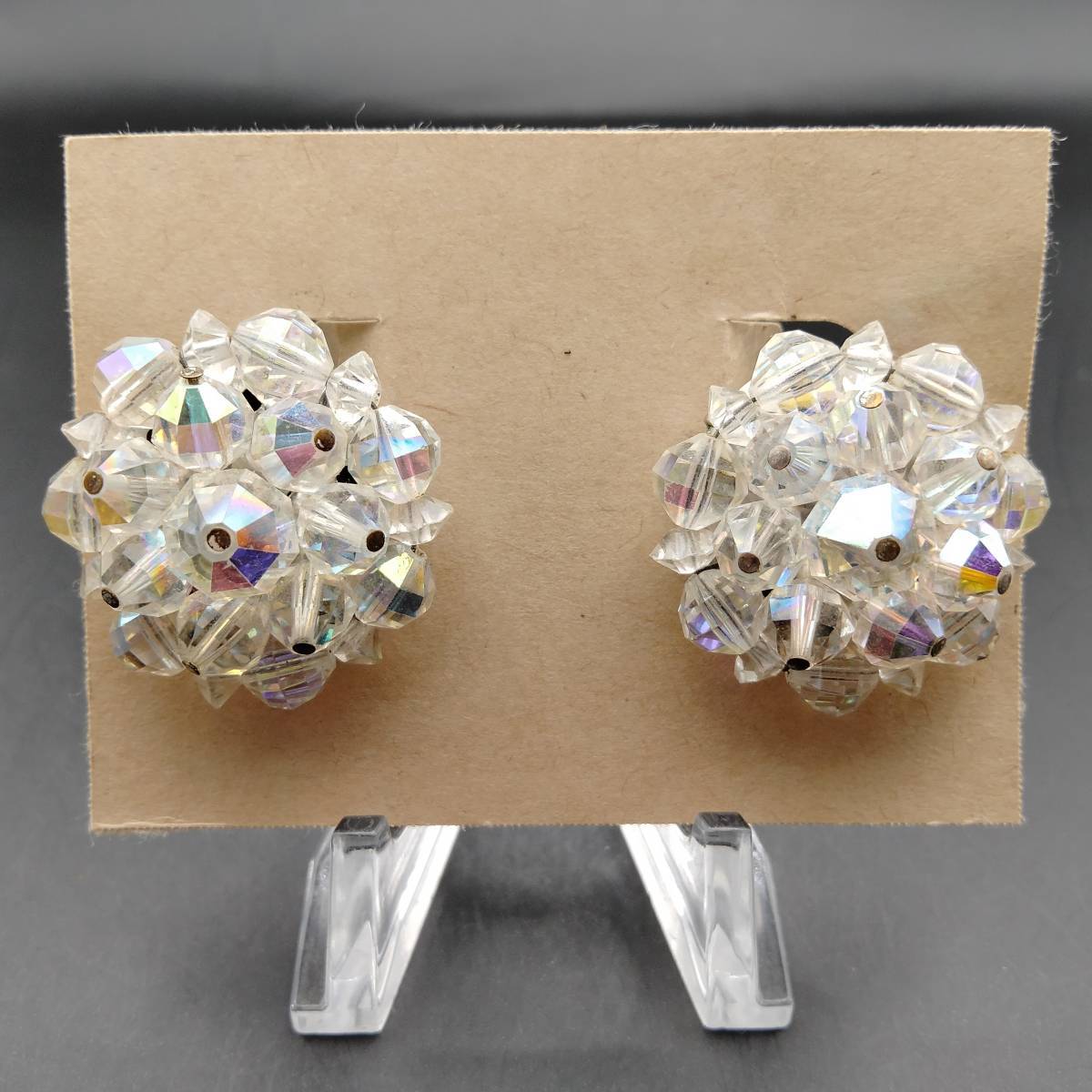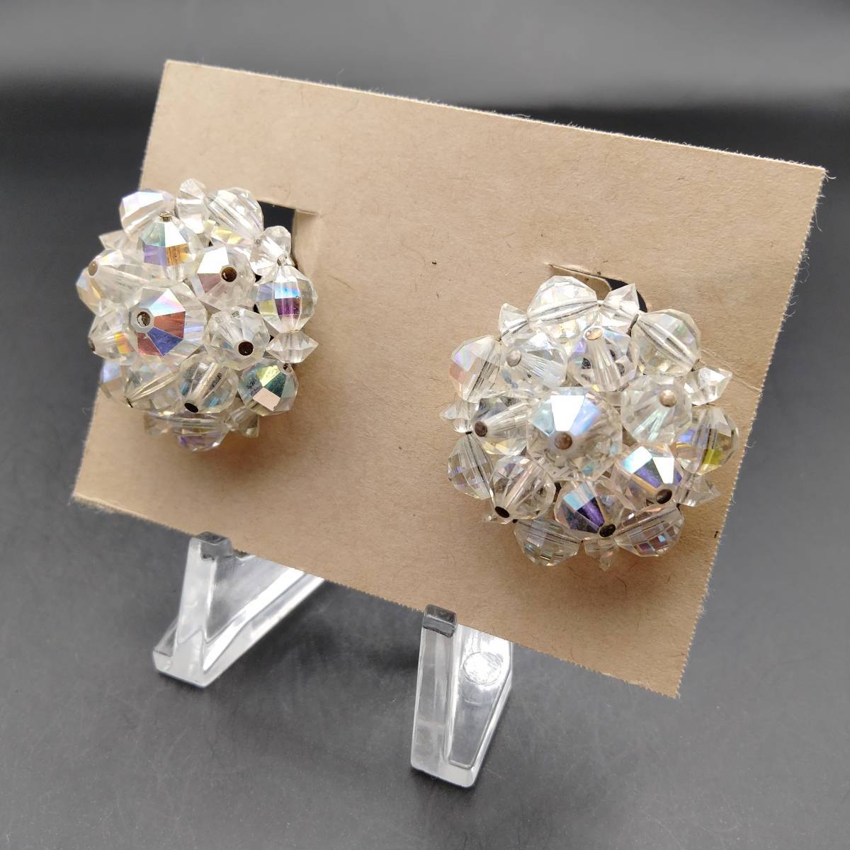 LAGUNA フラワー クリアビーズ シルバートーン ビンテージ イヤリング アールデコ 昭和レトロ コスチューム ジュエリー USA輸入 YMX19