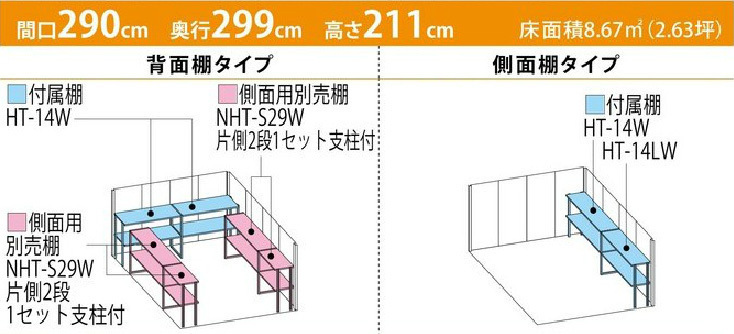 タクボ物置ND-2929 Mr.ストックマンダンディ一般型標準屋根背面棚タイプ間口2900奥行2990高さ2110選べる扉色 追加料金で工事可能