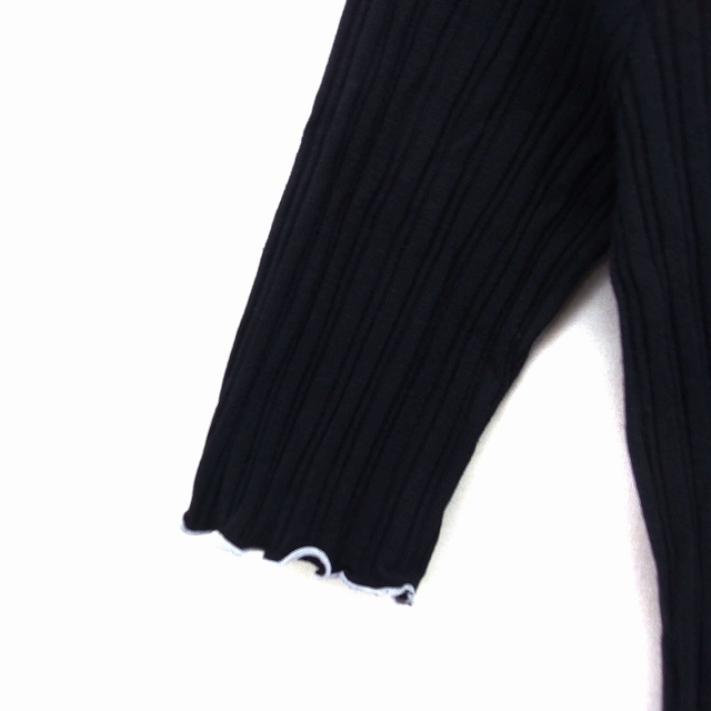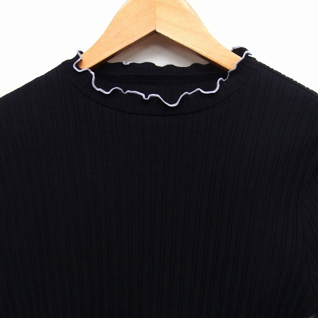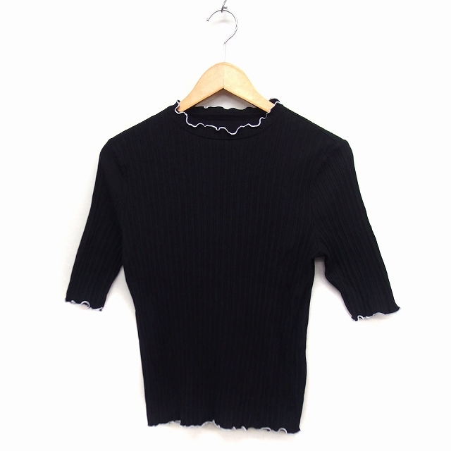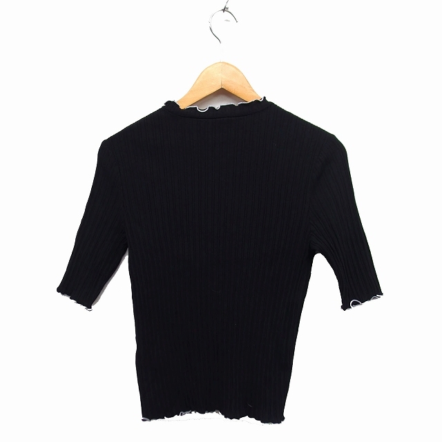 ビス ViS リブ カットソー 五分袖 フリル コットン 綿 F ブラック 黒 /FT27 レディース