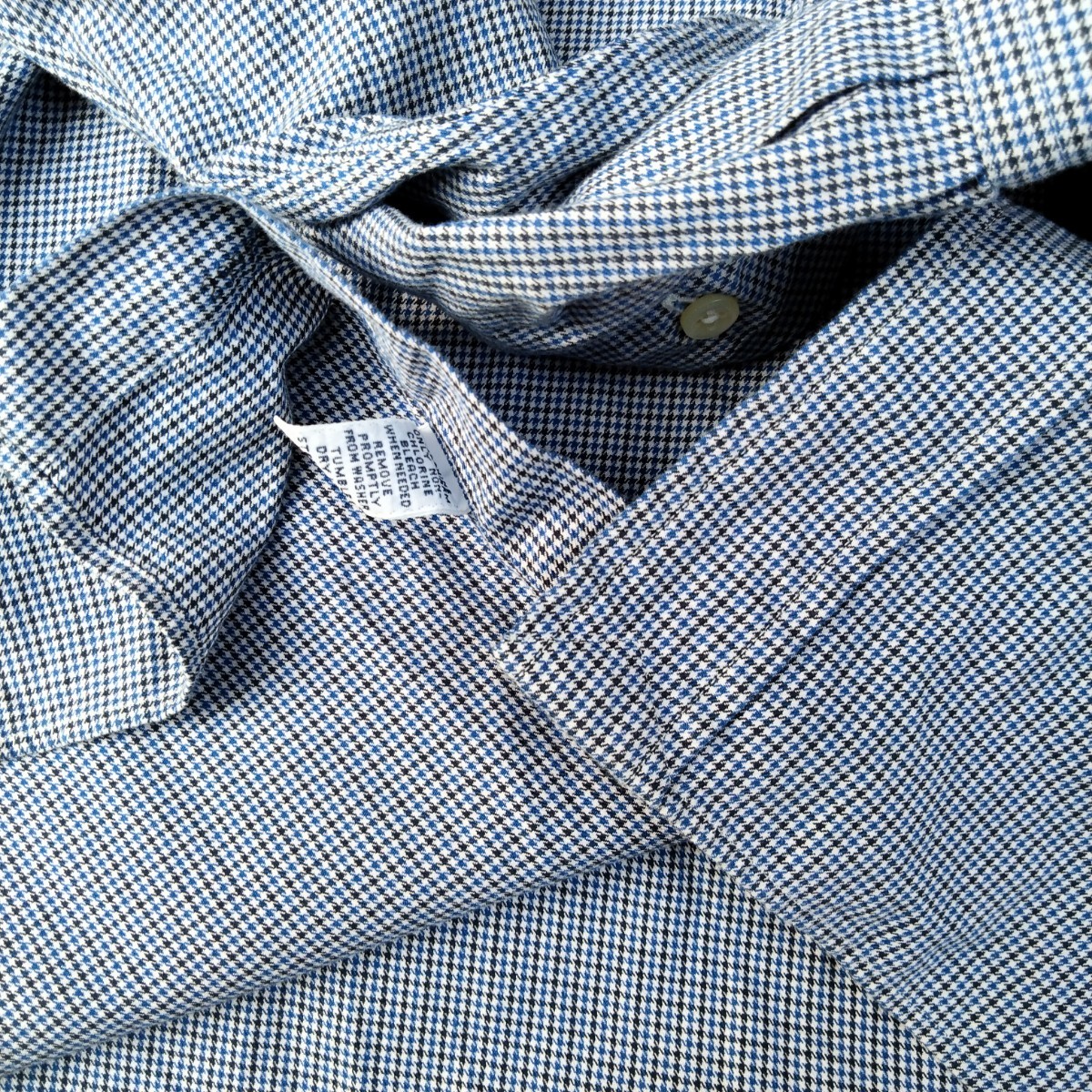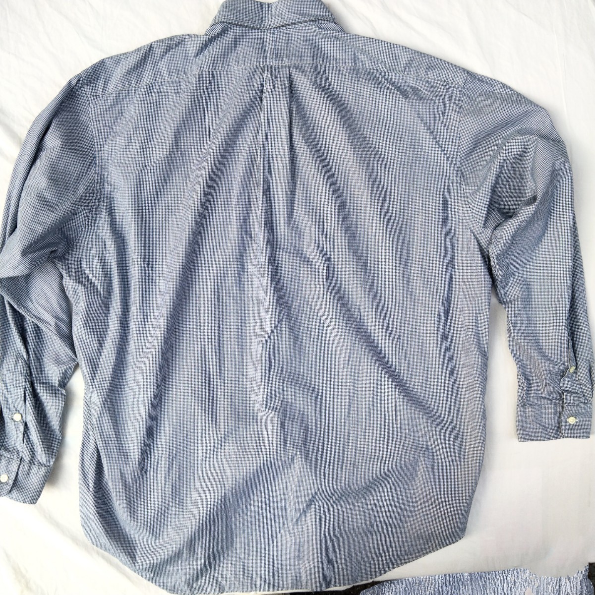 used 使用感ほぼなく程度良好 ホンコン生産 cotton 100% 2ply cotton 生地で soft で きめ細やかな 生地素材は 薄生地ながら 張りがあり季節を問わない生地素材 BD 襟 90年代の製品で肩、脇等 本縫い