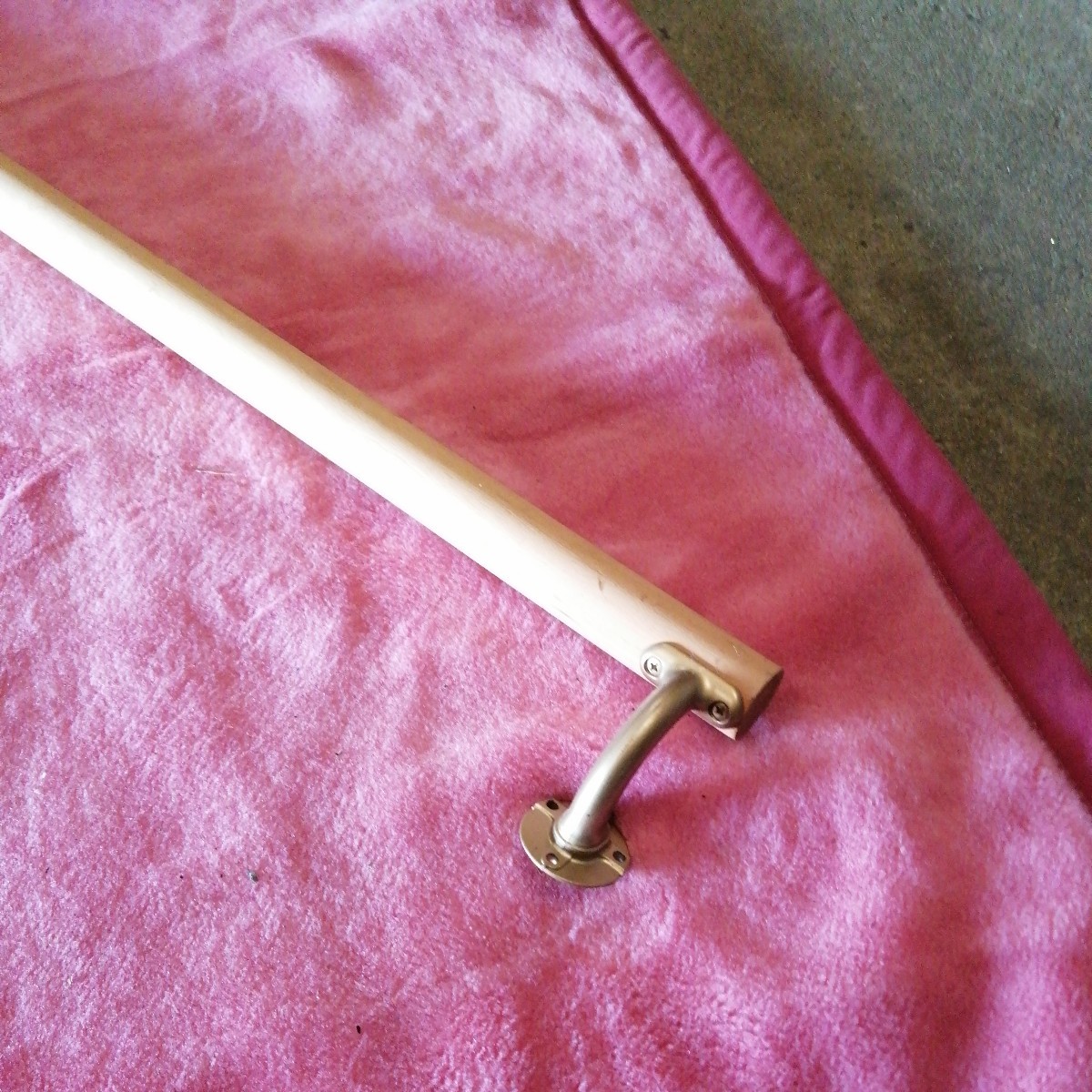 この手の手すりは、木製なので、ブランケットと木で少しはグラつきはございます。