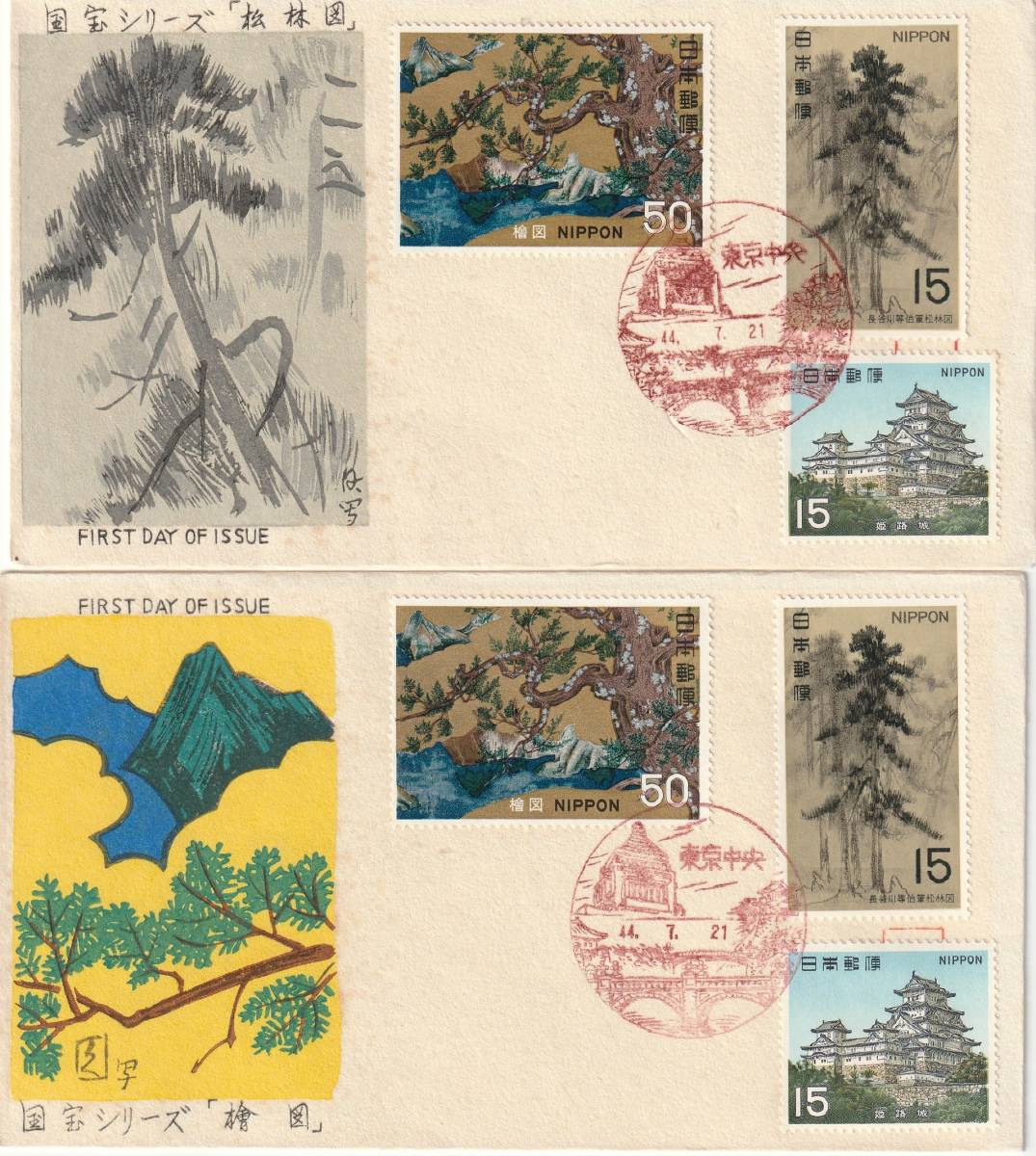 FDC 1969年  第1次国宝シリーズ 第6集 安土桃山時代 3貼 カシエ2-3  松屋