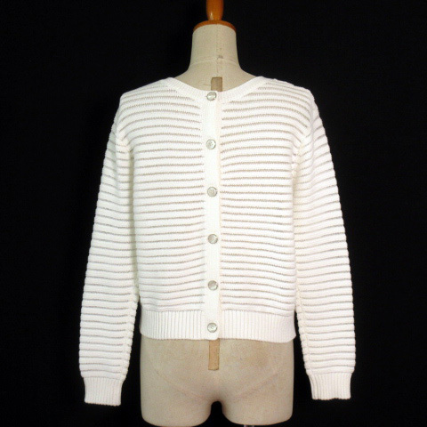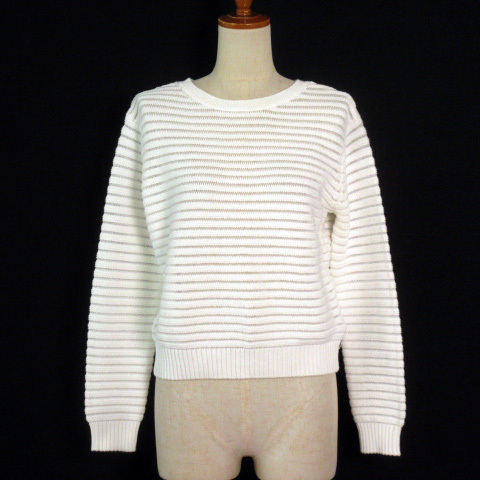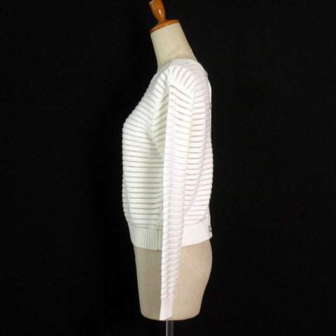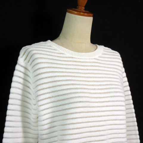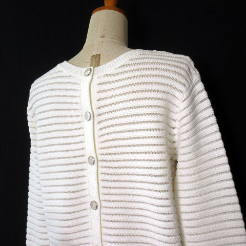 インディヴィ INDIVI カットソー ニット ボーダー バックボタン 38 白 ホワイト レディース