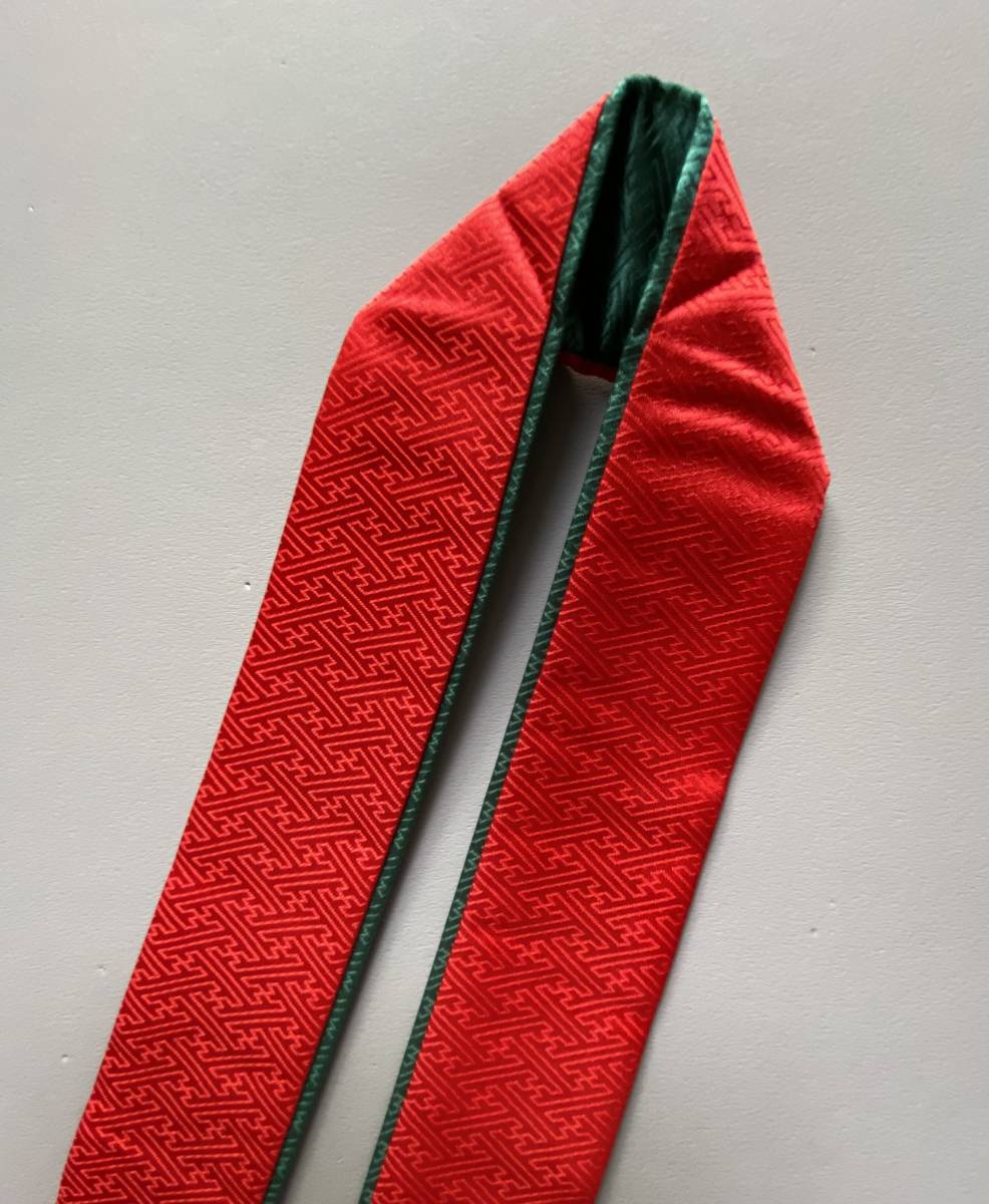 | 商品説明 | ◆素材 表地 ::ポリエステル100% 芯地 :不織布 ◆サイズ 長さ 約1m23㎝ 幅 約5.7㎝ ◆色 緑色/赤色 地紋 サヤ型 ◆状態 新品 日本製 |