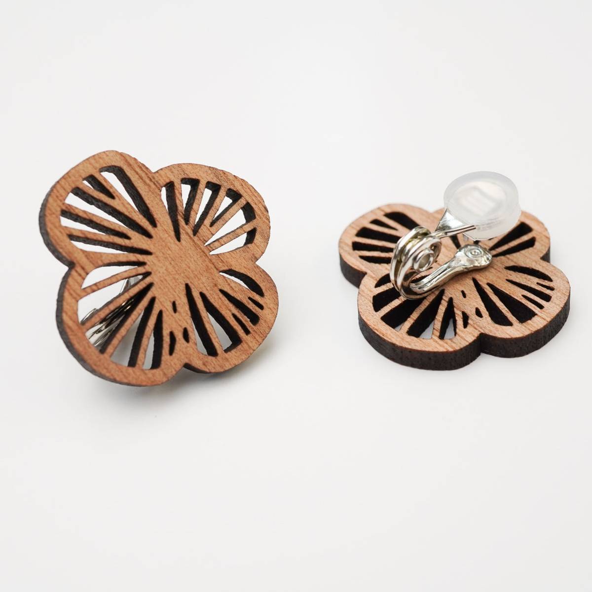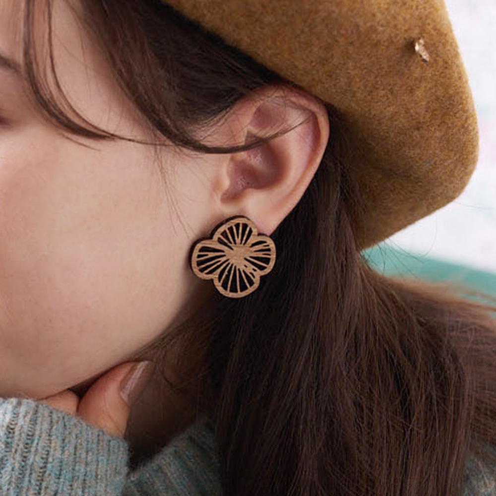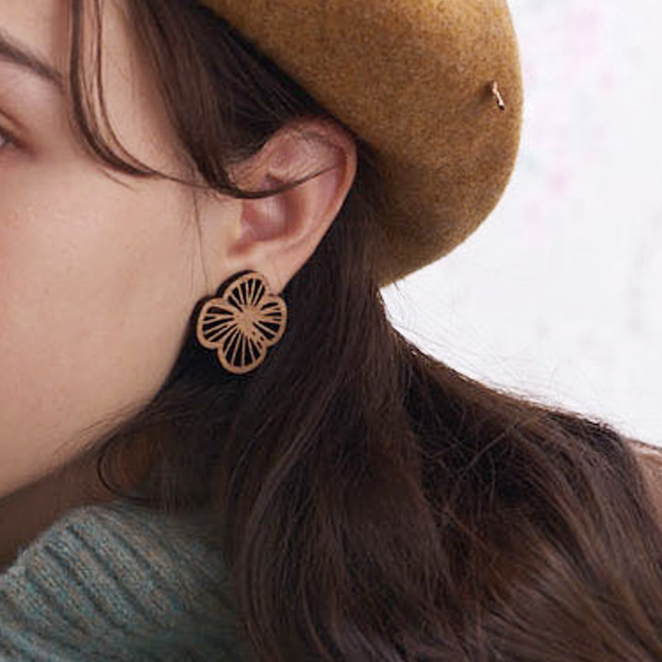 木のナチュラルな質感を活かしつつ、 かたち・もよう・テイストはさまざま。 コレクション心をくすぐるイヤリングです。