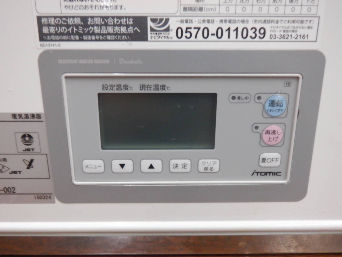| 説明 | 商品説明+++ イトミック 電気湯沸器 温水器 貯湯式 30L EWR30BNN220C0 ’21年製 W360×D250×H747の出品です。 動作確認済み 写真で判断できる方のみご入札下さい。 ◆はじめに 必ず注意事項・発送詳細をご確認下さい。 手の届く範囲で清掃していますが、見落としがある場合もございます。 予めご了承下さい。 ご理解いただける方のご入札をお待ちしております。 ◇仕様◇ 【メーカー】 イトミック 【 型 式 】 EWR30BNN220C0 【サ イ ズ】 幅360×奥行250×高さ747(mm) 【 重 量 】 14kg 【 電 源 】 単相200V 50/60Hz 【消費電力】 2kW 【 定 価 】 -円(税抜) 【 年 式 】 2021年製 中古品ですので全体に小さなキズ等ございます。ご理解の程お願いいたします ◆状態【B】 ------------------------ 商品の状態ランク ------------------------ 【New】 新品未開封 【SS】 新品未使用(開封品) 【S】 中古極美品(使用が殆どなく、未使用品に近い極めてきれいな商品) 【A】 中古きれい(使用回数が少なく、大変きれいな商品) 【B】 中古ふつう(通常にある程度使用された商品) 【C】 中古使い込んでいる(キズや汚れが目立つがまだまだ使える商品) 【N】 中古難アリ(付属品の欠品が多い、または一部動作しないところがある) 【J】 ジャンク(故障している商品、部品取りなどにご利用ください) ---------------------------------------------------------------- |