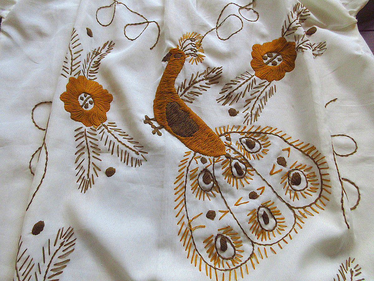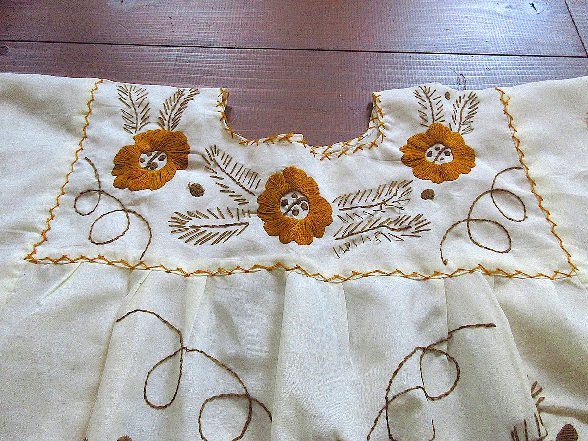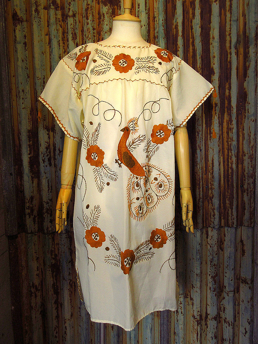 1970’s クジャク×フラワー刺繍入り半袖ワンピース