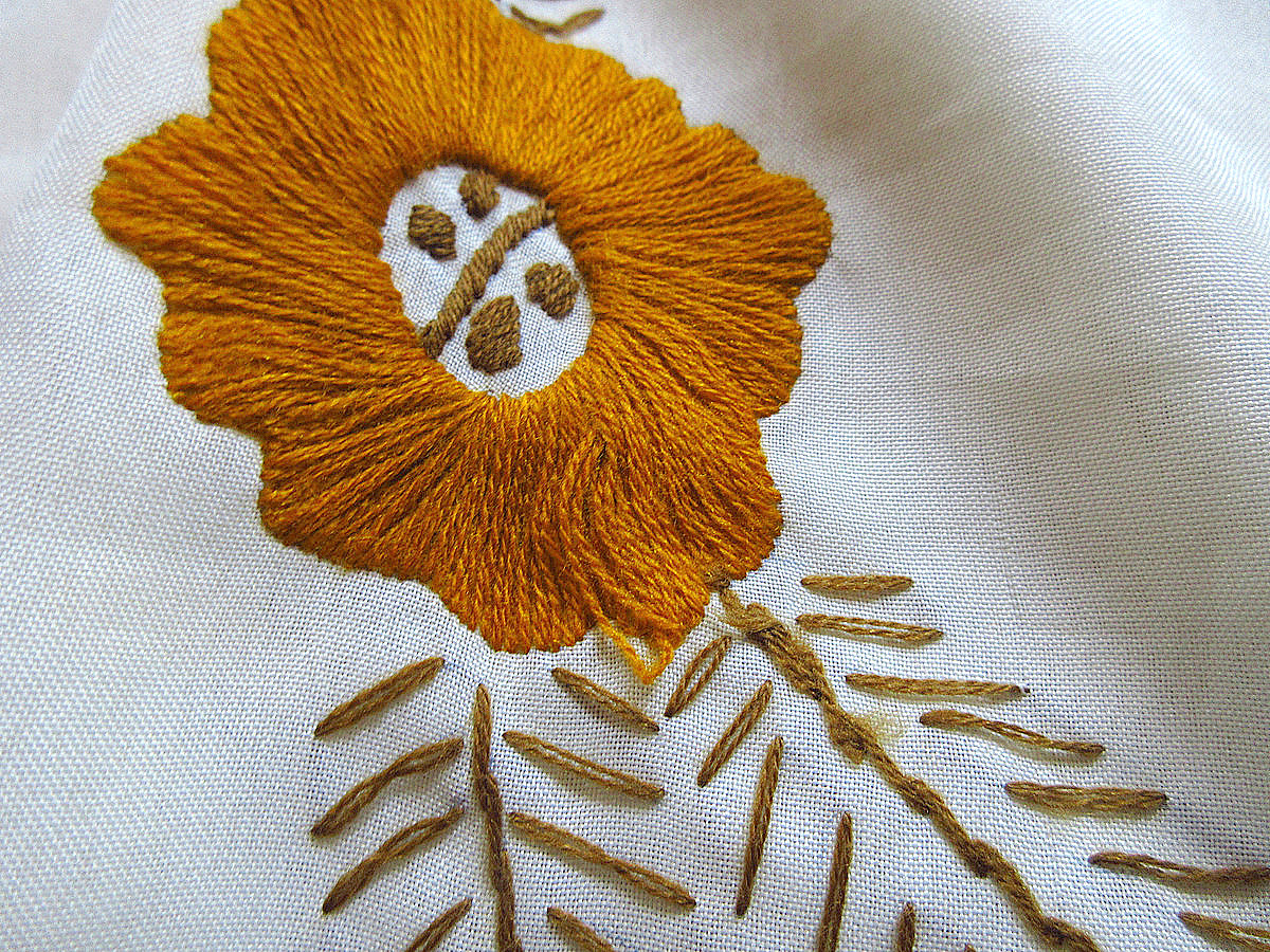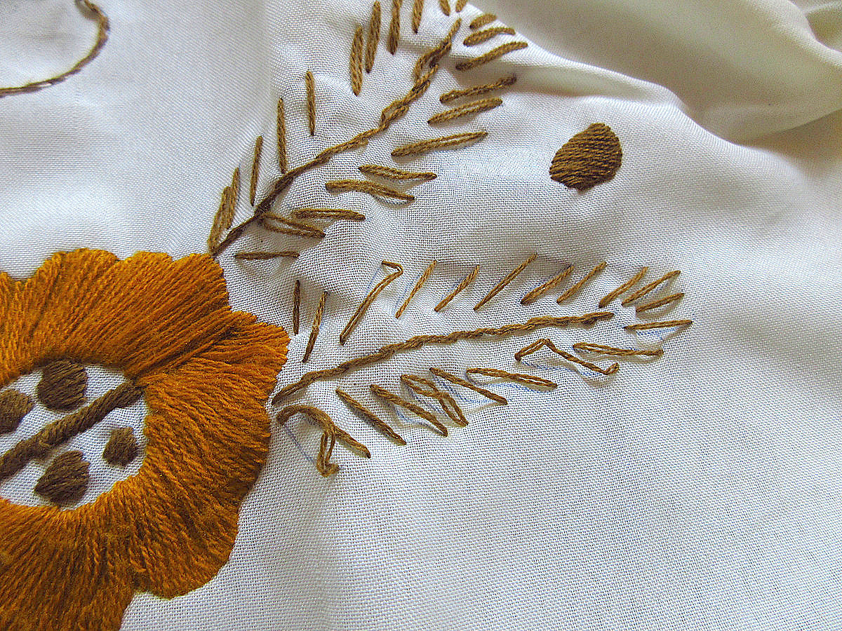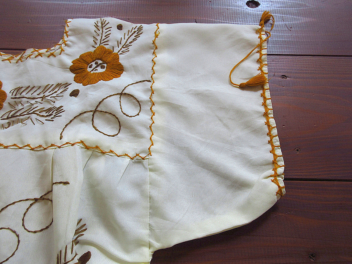 1970’s クジャク×フラワー刺繍入り半袖ワンピース
