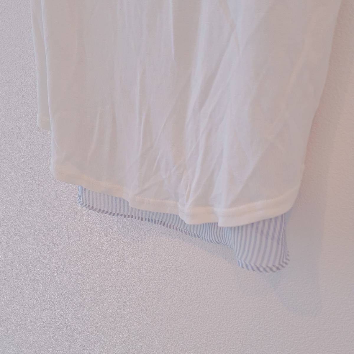 | 送料無料 LHELBIE トップス カットソー ホワイト 白 ×水色 ストライプ 裏レース M レディース おしゃれ |