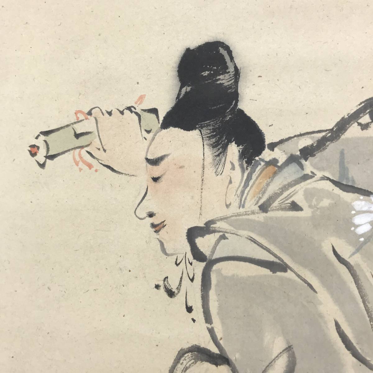 【作品状態】 本紙は紙本肉筆です。本紙は多少の汚れしみあります。表装はもみ紙表装で、多少の時代感あり、全体に時代スレあります。