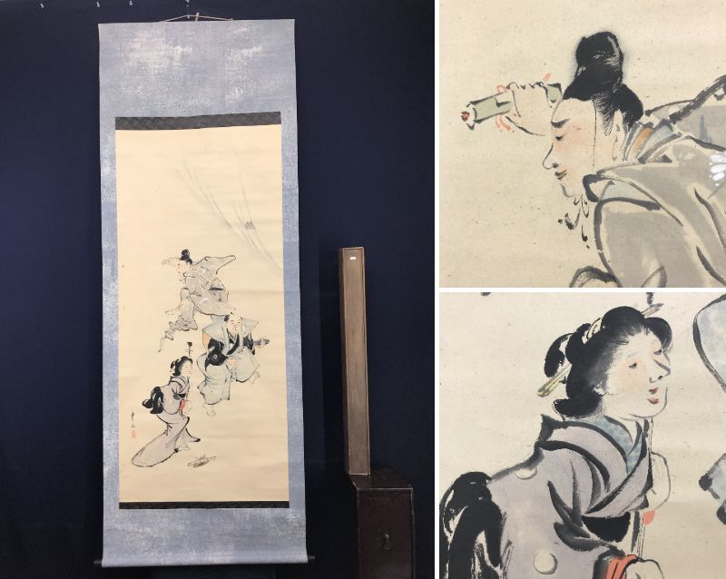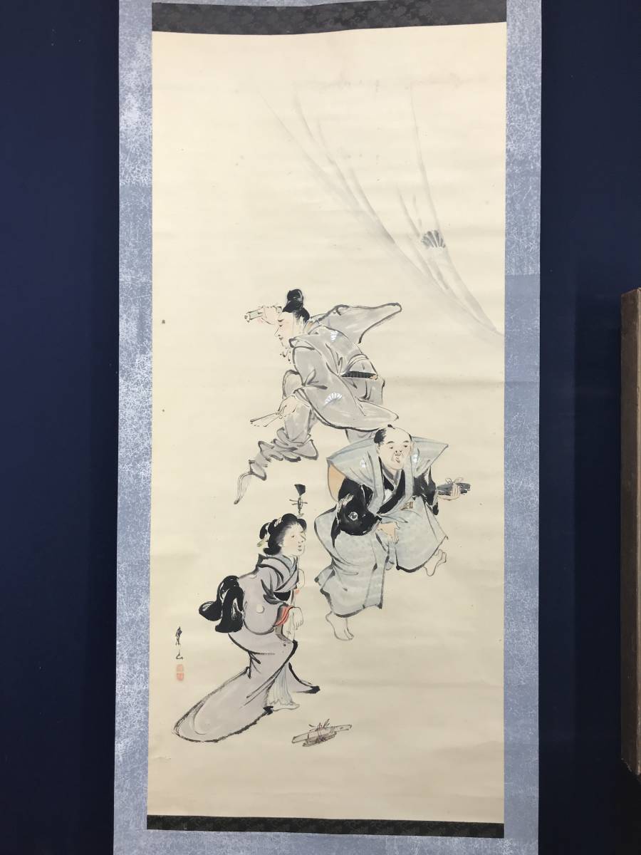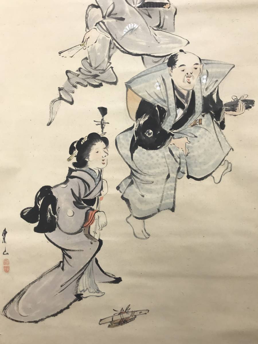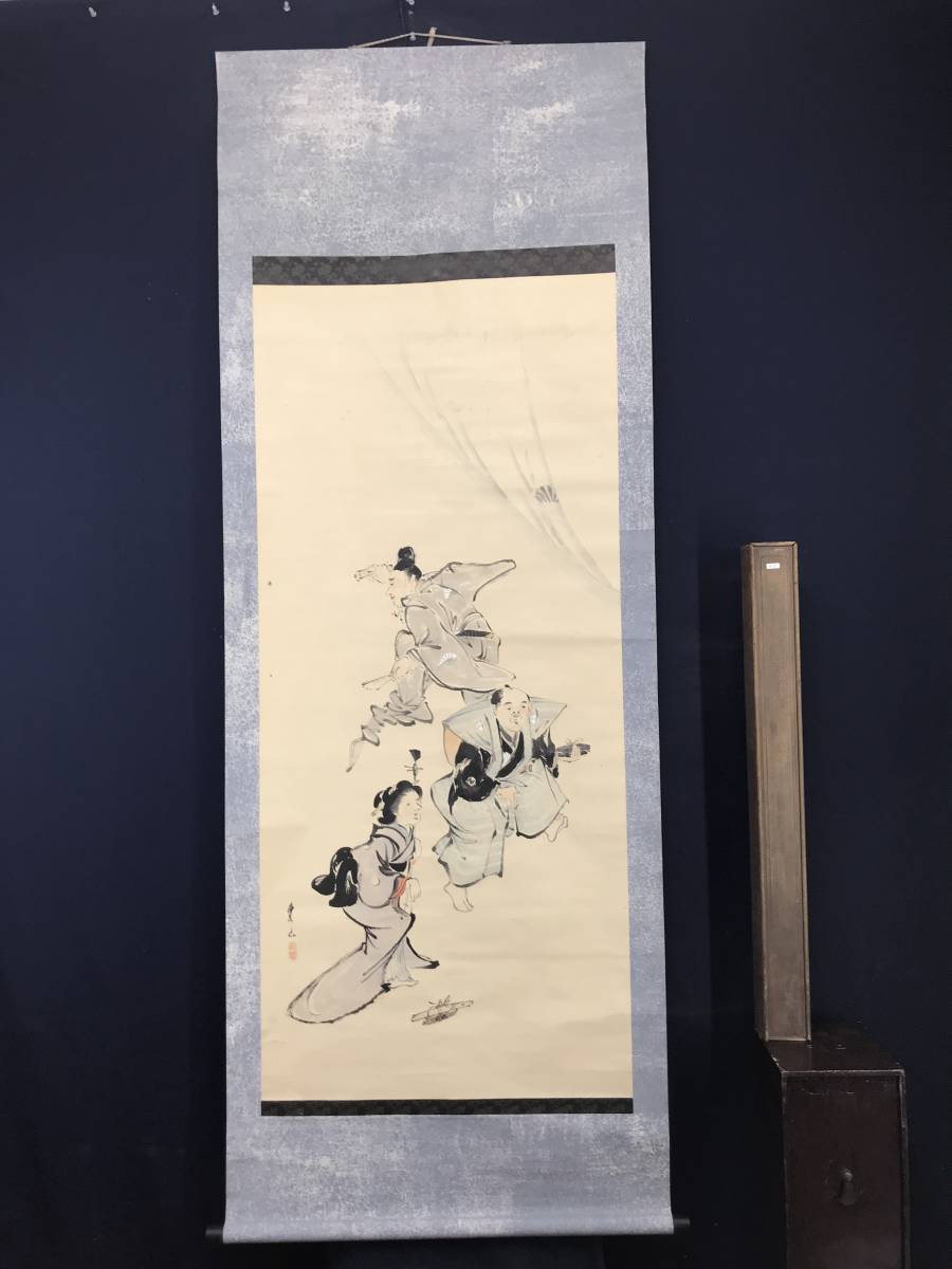真作/渡辺東山/忠臣踊図/人物図//掛軸☆宝船☆AC-536