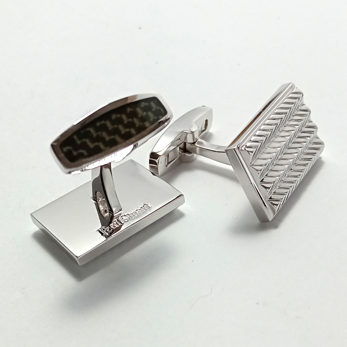 | 【カラー】シルバー×ブラック 【サイズ】1.9㎝×1.2㎝ 【素材】真鍮×カーボンファイバー 【付属品】専用ボックスケース お色違いや、デザイン違い等多数出品しております。 発送方法について ゆうパック元払い発送以外は承っておりません。 同梱いたします。(何点でも60サイズです。) 土日祝日の発送はお休みを頂いております。 | |