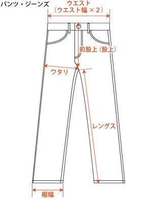 ウェスト:82ワタリ:27裾幅:22前股上:28レングス:75 *採寸について若干の誤差はご容赦下さい。