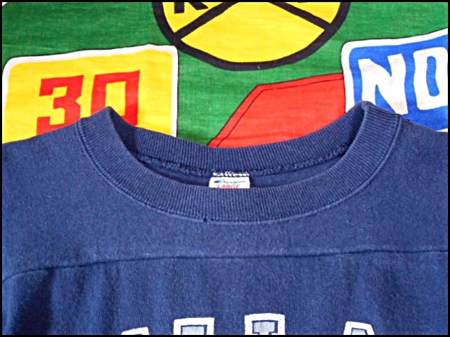 【バランスの良いプリントがな1枚】Made in USA製ChampionチャンピオンビンテージフットボールカレッジプリントTシャツ80s紺色トリコタグ