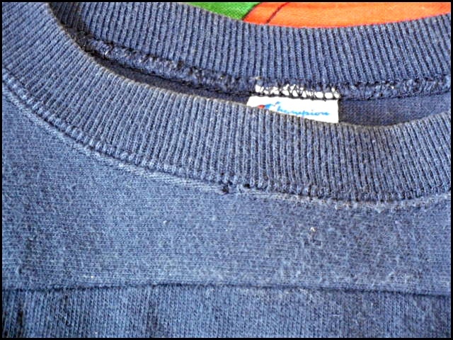 ブランドは「Champion(チャンピオン)」、生産国はMade in USA(アメリカ製)、タグはコットン100%表記のトリコタグ(トリコロールタグ)になります。