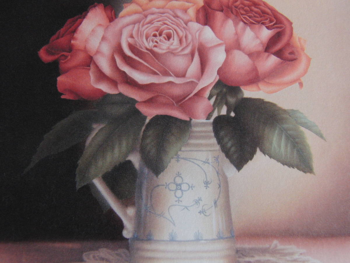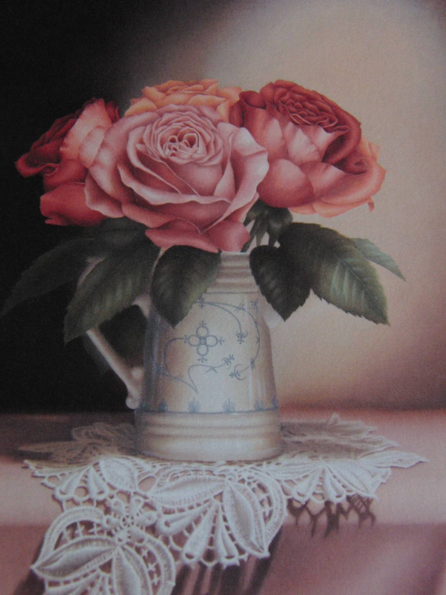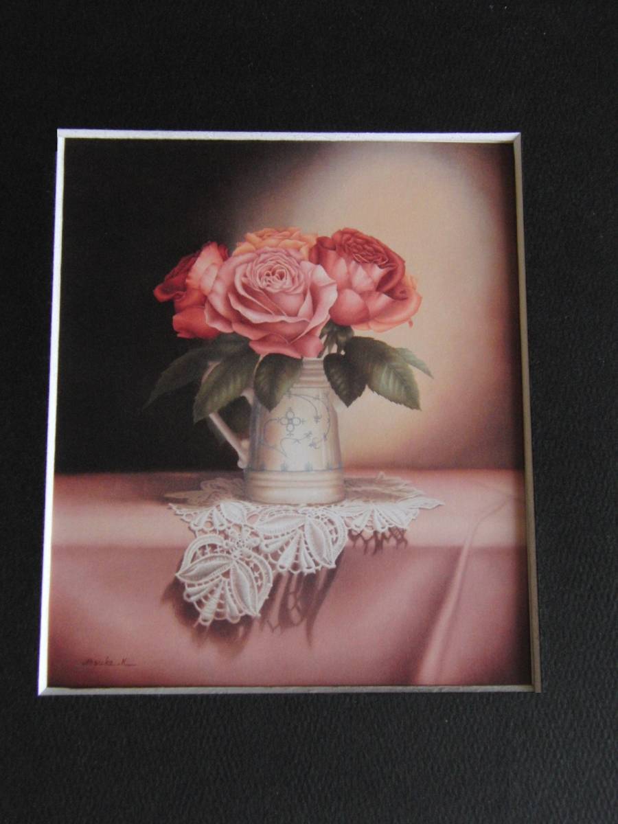黒田あつ子、【薔薇とレースのある静物】、希少な額装用画集より、新品額装付、状態良好、送料無料