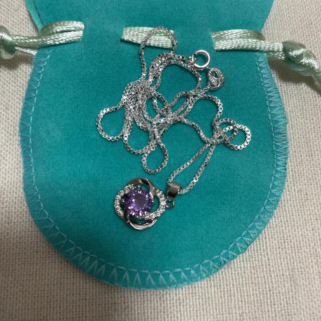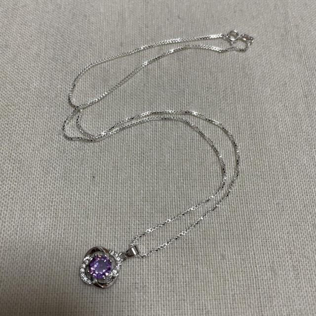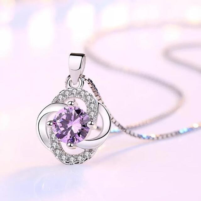 花をモチーフにしたおしゃれなネックレスです。紫のジルコニアが綺麗です^ ^